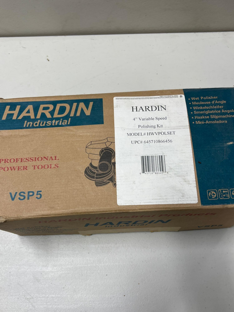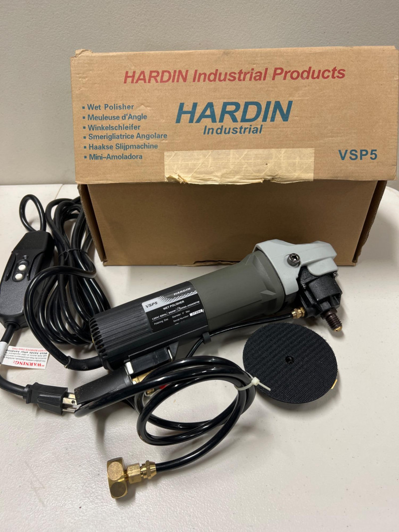 Designed for precision and durability, the Hardin VSP5 Wet Polisher is a contractor-grade tool ideal for polishing granite, marble, concrete, and other stone surfaces. With an 900-watt motor and variable speed control ranging from 2,000 to 4,500 RPM, 120V, it offers the flexibility needed for both coarse grinding and fine finishing. Its water-feed system reduces dust and cools the surface during operation, making it suitable for wet polishing tasks in fabrication shops, restoration projects, and jobsite prep. Ergonomic grip and splash guard enhance control and safety. Brand: Hardin Model: VSP5 Type: Wet Polisher Motor: 900W Speed: Variable (2,000–4,500 RPM) Features: Water-feed system, splash guard, ergonomic grip Application: Stone polishing, concrete finishing, tile work Need Shipping?: Contact LoopCycle