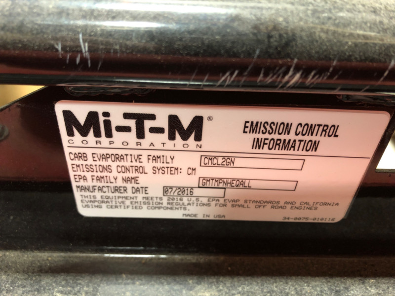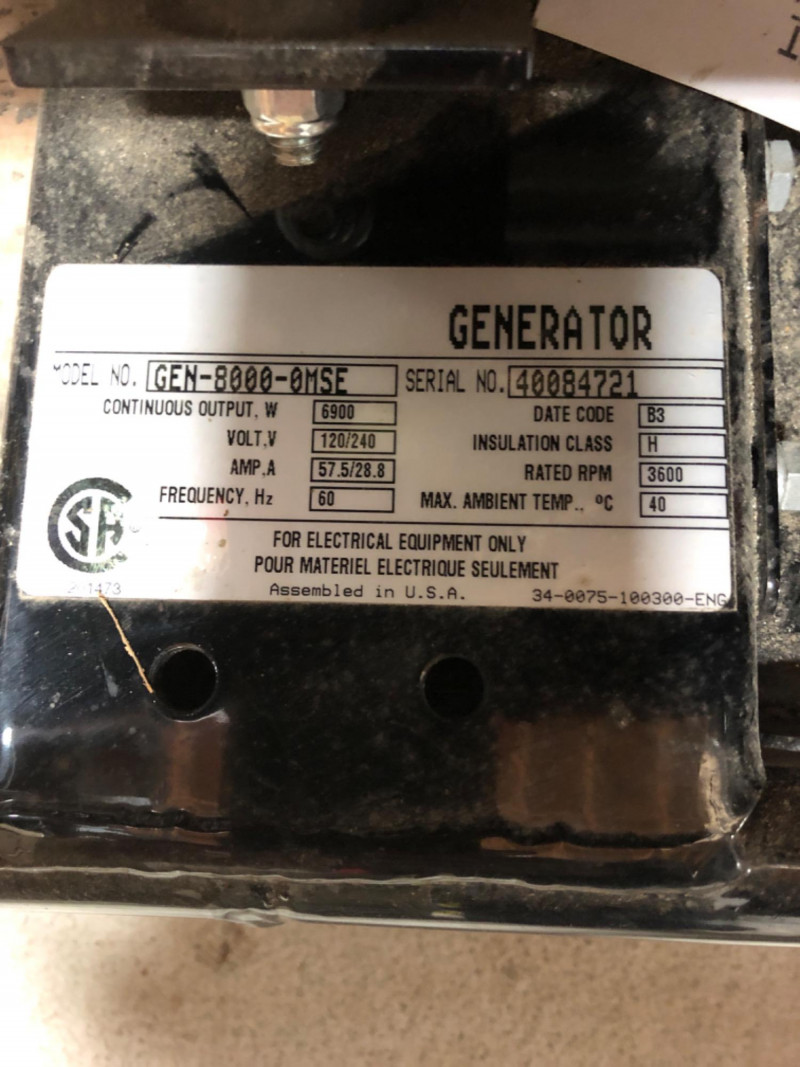 Heavy-duty Mi-T-M generator, assembled in the USA. Model GEN-8000-0MSE, Serial No. 40084721. Designed for reliable performance with a 3600 RPM engine, delivering a maximum output of 8000 watts and continuous output of 6900 watts. Dual voltage capability (120/240V) with 57.5/28.8 AMP ratings at 60 Hz. Industrial‑grade engineered for reliable jobsite power. Built with copper windings for clean power, GFCI‑protected outlets, and a heavy‑duty steel frame. Compact 29" × 24" × 22" design makes it suitable for contractors, shops, or backup energy needs. The unit was puchased by owner and has never been used.