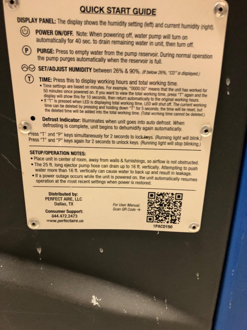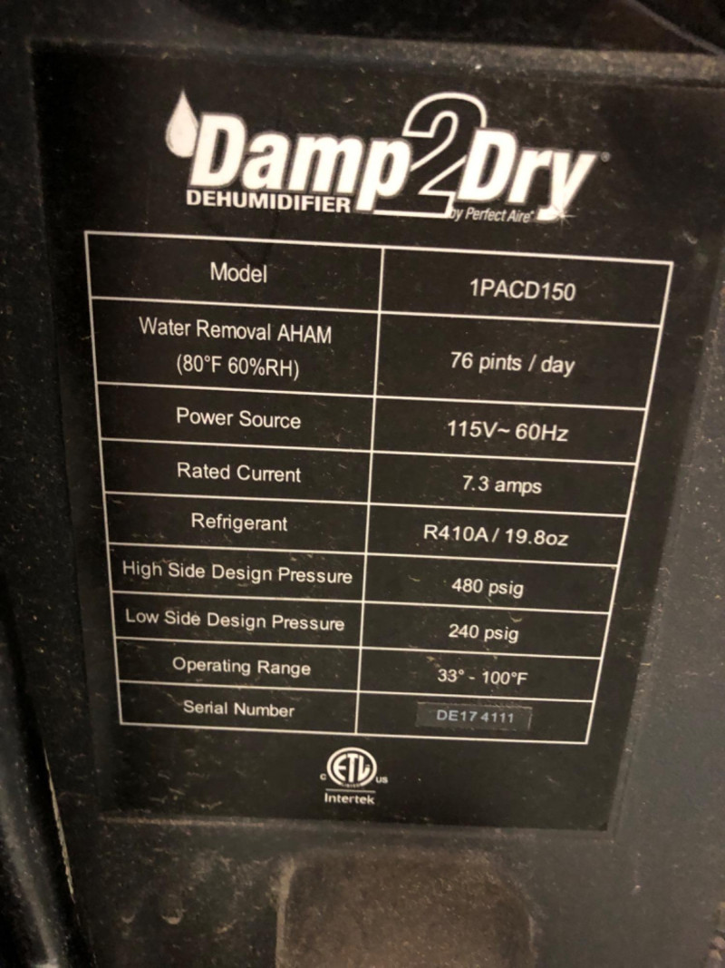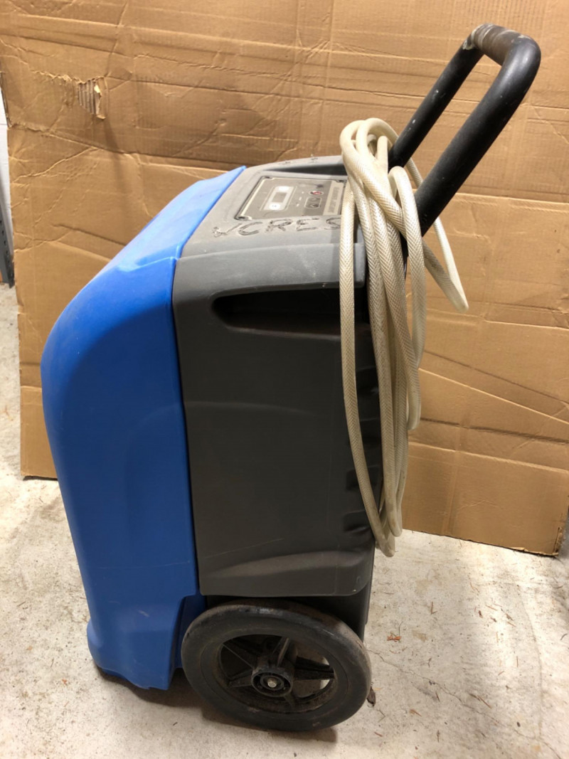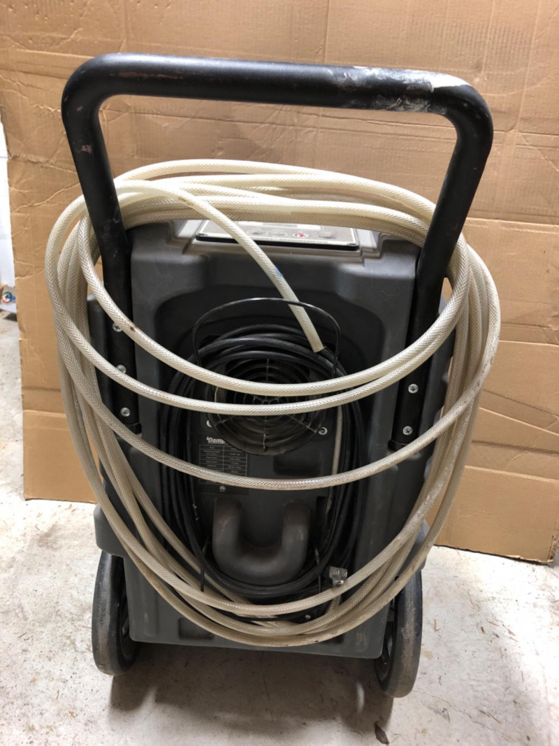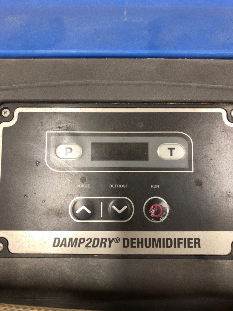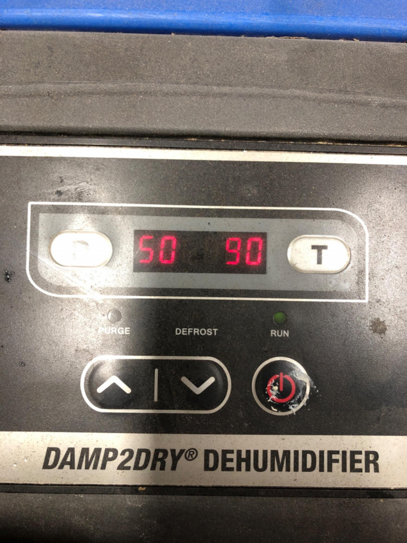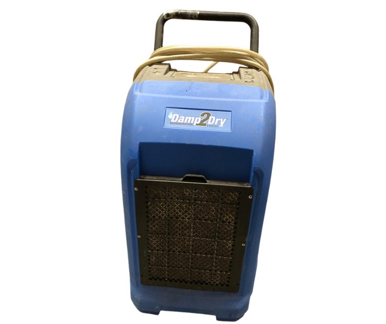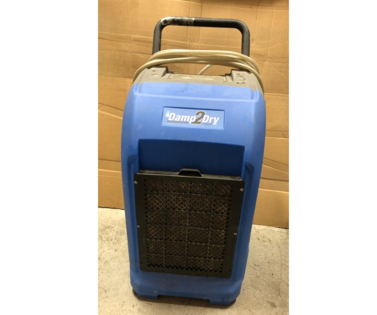 Damp2Dry commercial dehumidifier designed for demanding environments. High‑capacity performance removes excess moisture efficiently, helping maintain dry conditions in basements, workshops, or construction sites. Portable design with durable housing ensures reliable use across industrial and residential settings. Powers on.
