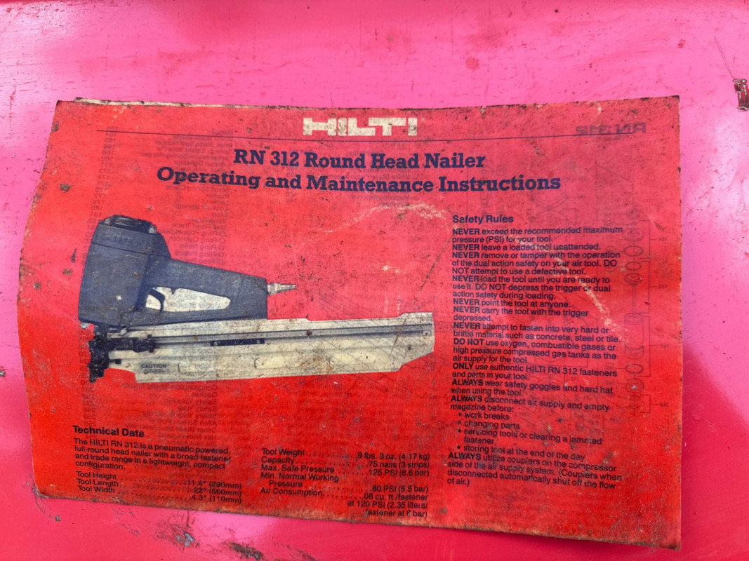 Lot # 34 - Hilti Pneumatic Round Nailer 312 Series II