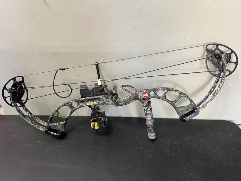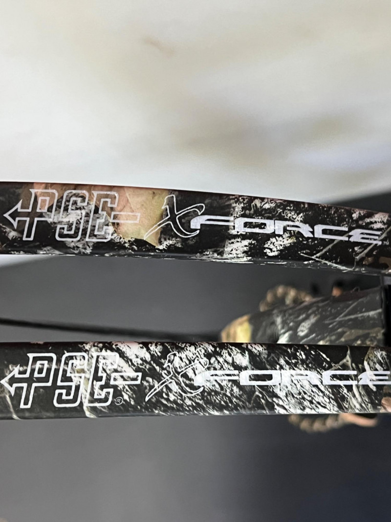 Precision meets power in this PSE X-Force compound bow setup. Measuring approximately 38 inches, this bow is paired with a set of arrows and housed in a protective case for safe transport and storage. Designed for hunting or target practice, the X-Force series is known for its aggressive cam system, smooth draw cycle, and high-velocity release. Ideal for seasoned archers or collectors seeking a performance-driven setup. Whether you're heading to the range or into the field, this kit offers balance, control, and durability. Brand: PSE Model: X-Force Type: Compound Bow Length: Approx. 38 inches Includes: Bow, arrows, protective case Application: Hunting, target practice, archery training
