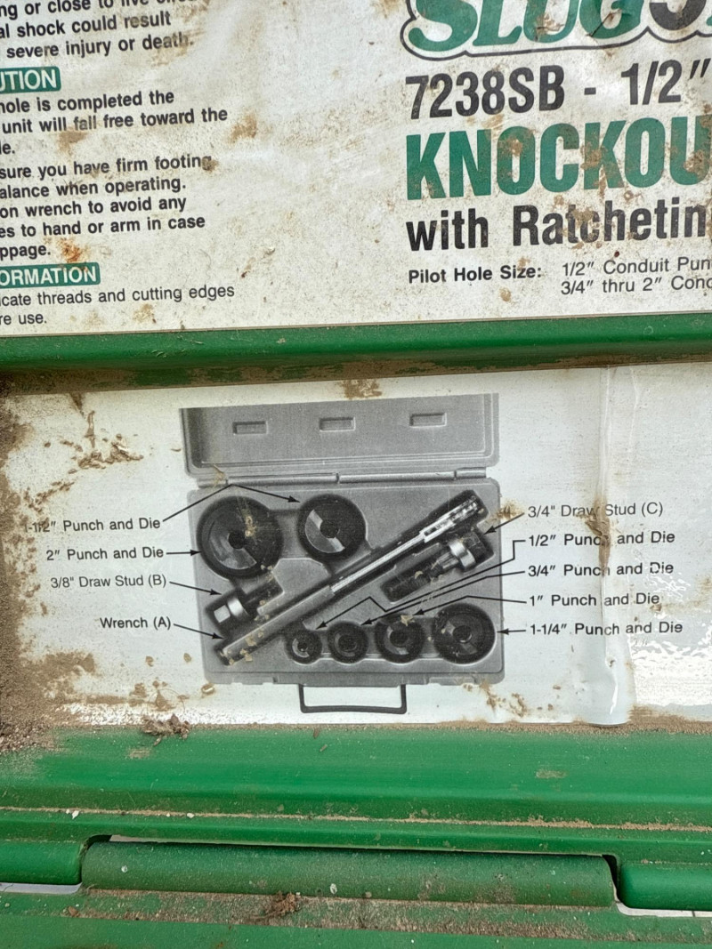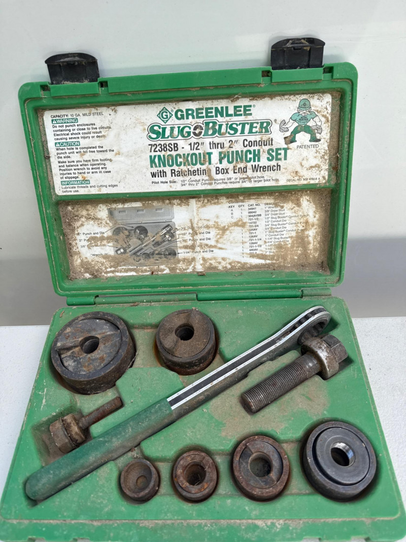 Greenlee knockout punch set designed for precision hole‑cutting in electrical and construction applications. Durable steel construction ensures long service life. Compact kit suitable for shop or jobsite use. Need Shipping?: Contact LoopCycle
