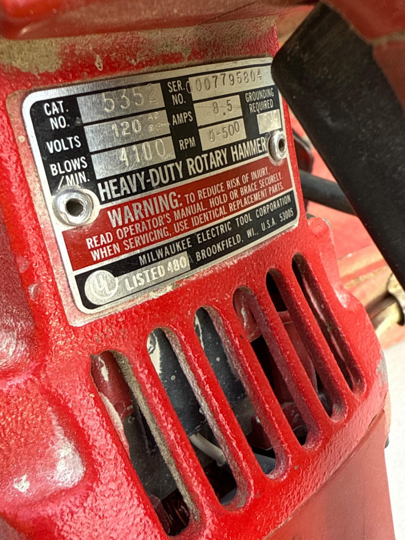Milwaukee, catalog number 5352, 1‑1/2 inch rotary hammer drill designed for heavy‑duty drilling in concrete and masonry. Built for contractor use with durable housing and powerful performance. Suitable for demanding jobsite applications. Operating. Need Shipping?: Contact LoopCycle