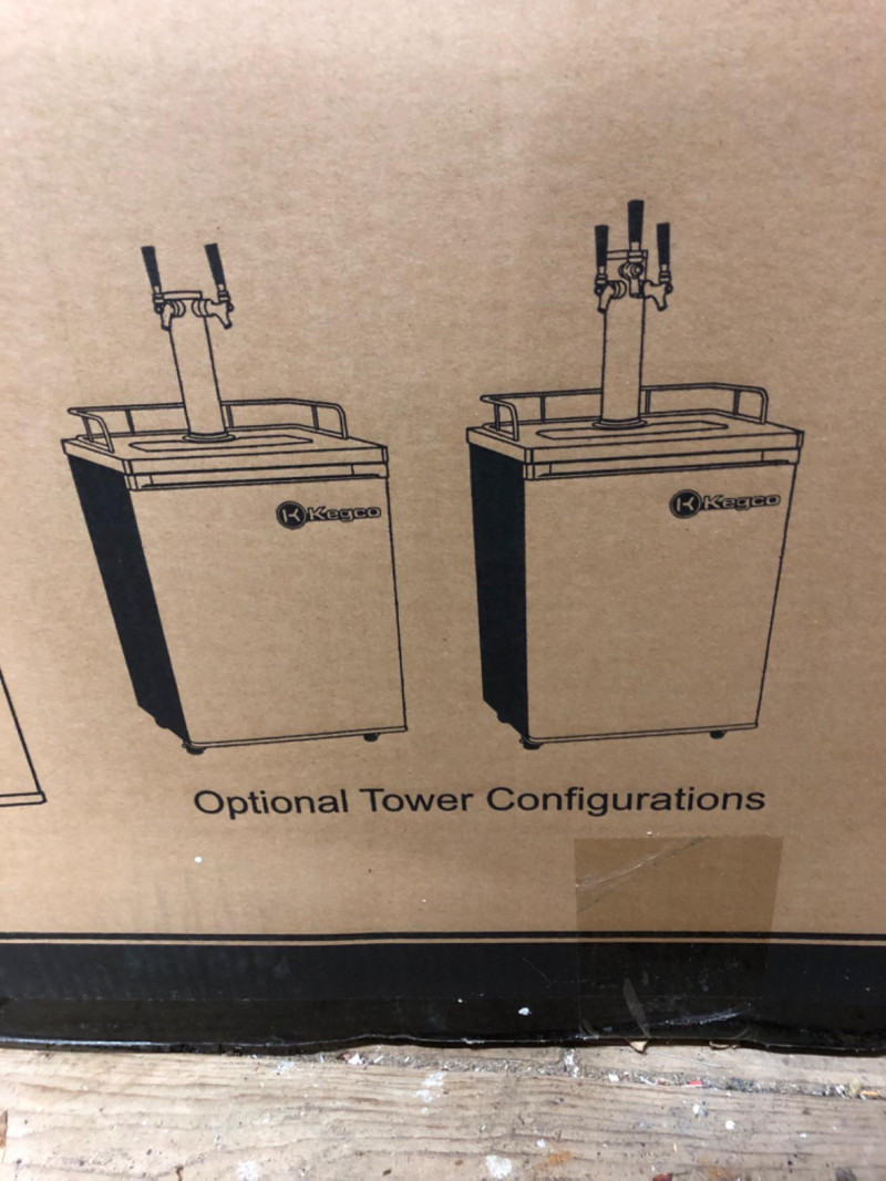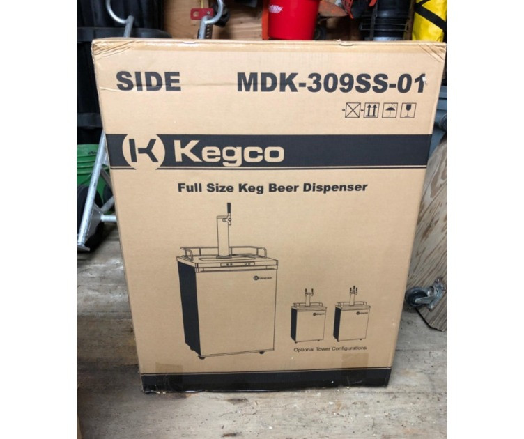 Kegco full‑size keg beer dispenser, brand new in box. Designed for home or commercial use, this unit provides reliable draft service with professional features. Includes full‑size cabinet, tap system, and cooling components for consistent pour quality. Retails at $928 (Amazon), this dispenser offers durability and performance for parties, events, or everyday enjoyment. Main photo is representative.