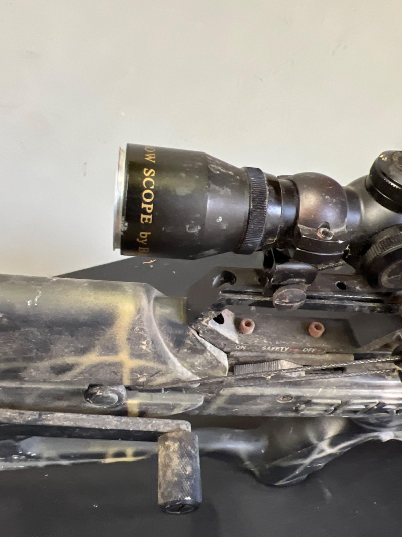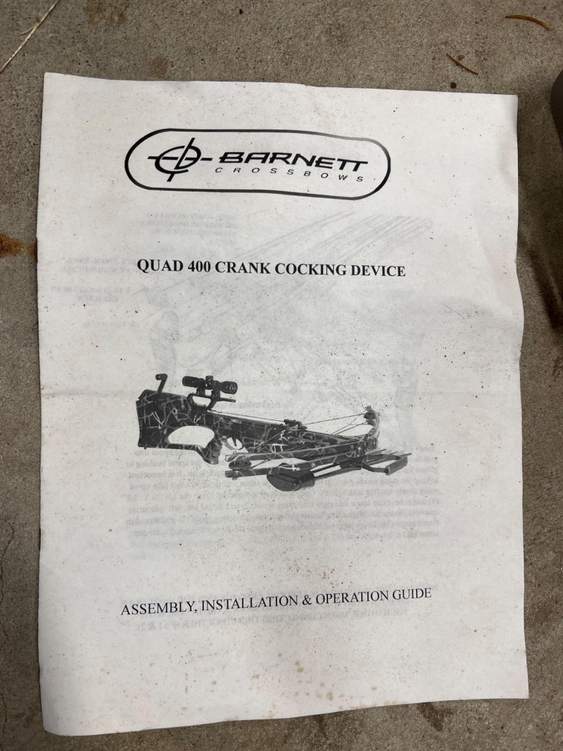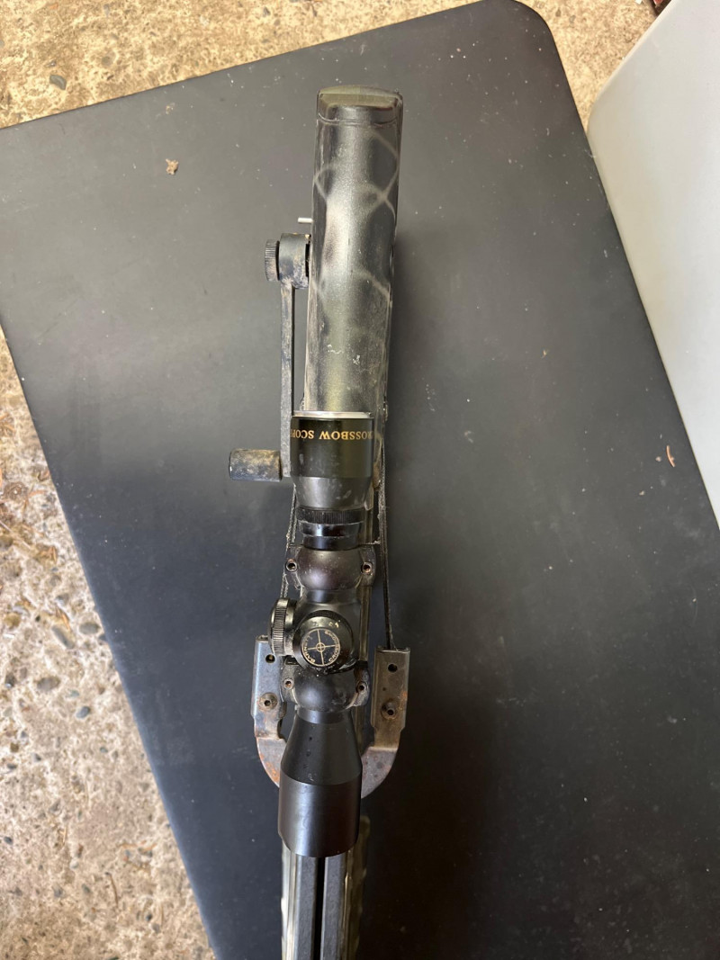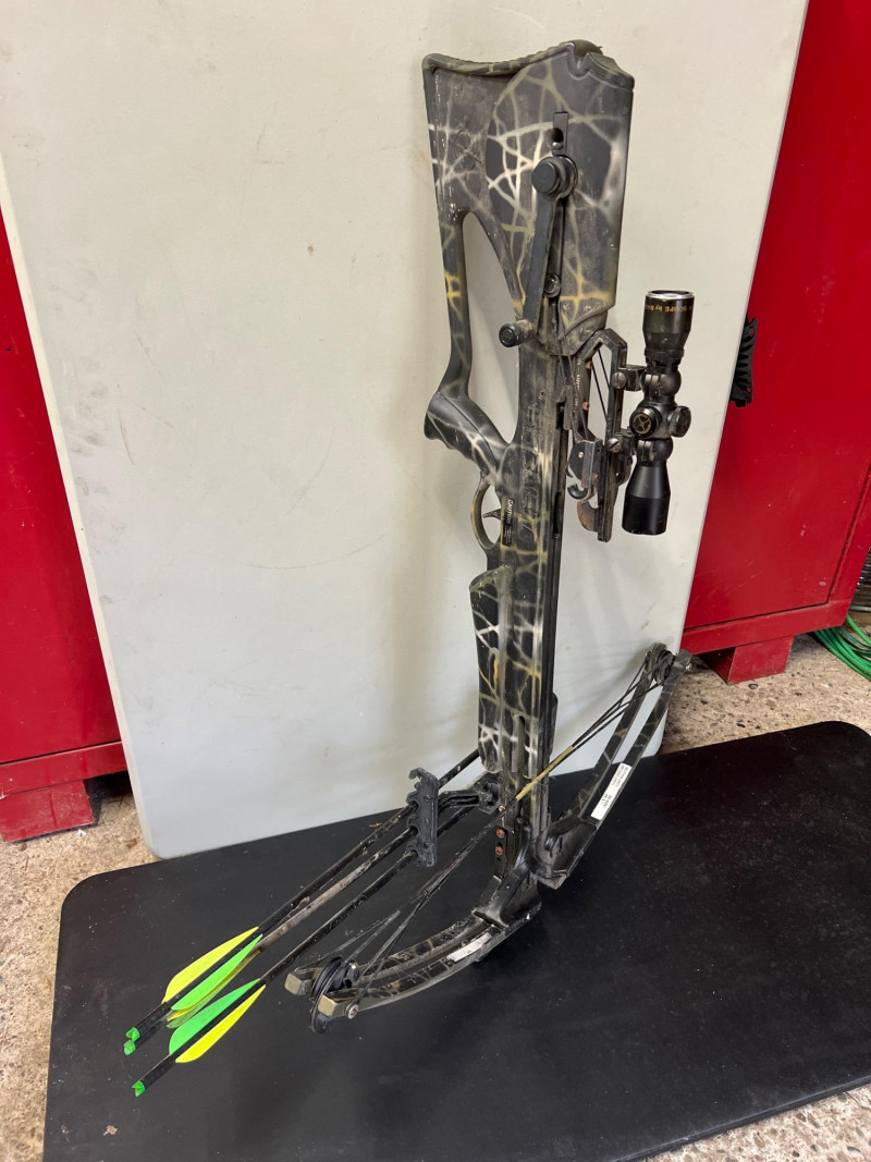 High‑performance Barnett crossbow complete with arrows and mounted scope for precision targeting. Crossbow: Barnett model, designed for accuracy and durability. Scope: Mounted scope enhances aim and long‑range precision. Arrows: Includes a set of compatible arrows for immediate use. Utility: Ideal for sporting, target practice, or collectors of quality archery equipment.