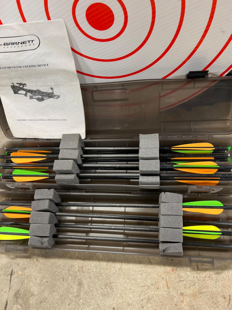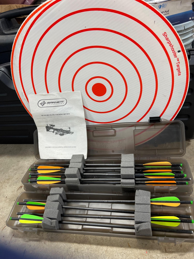 Lot # 61 - Barnett Crossbow with Arrows, Scope and Targets ($250-400)