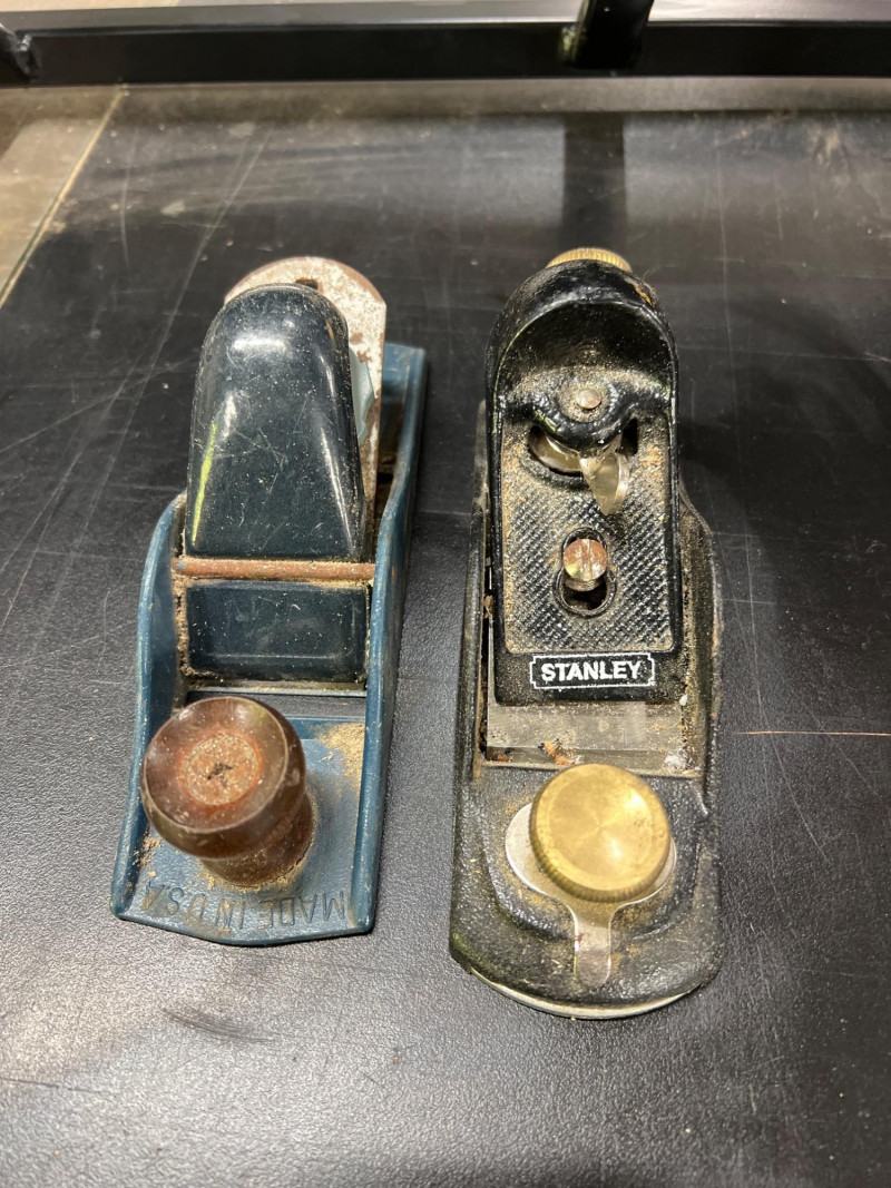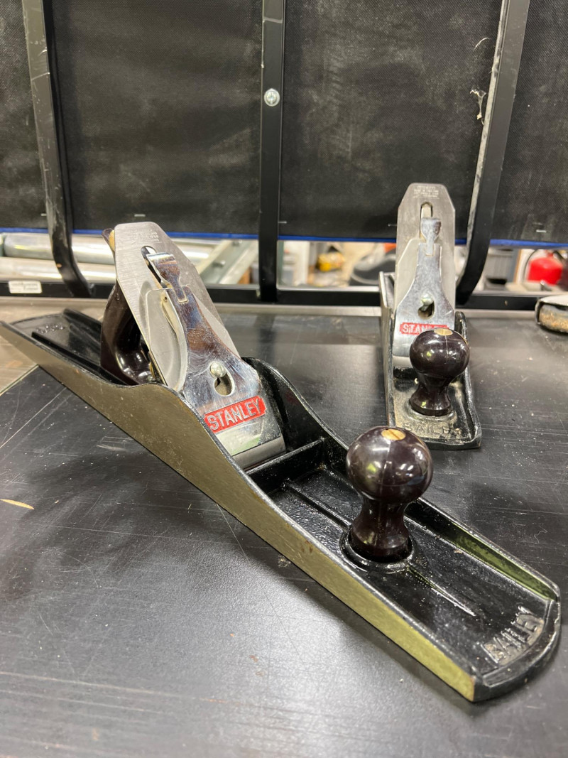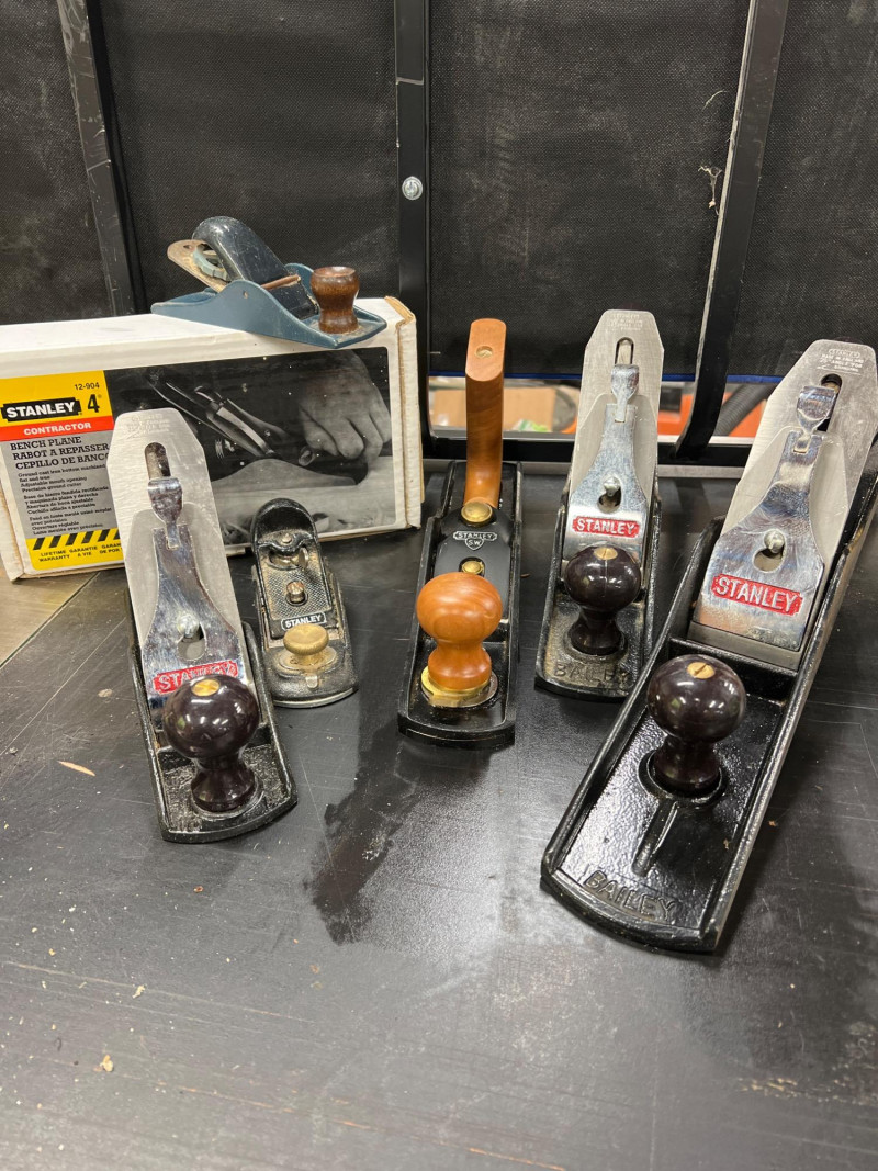 A trio of classic Stanley bench planes, including Nos. 4, 5, and 7, complemented by two smaller companion planers. Additionally, a featured Stanley Sweetheart (SW) branding with redwood handles, a hallmark of quality craftsmanship from the early 20th century. Collectors and woodworkers alike value these planes for their durability, balance, and historical significance. Need Shipping?: Contact LoopCycle