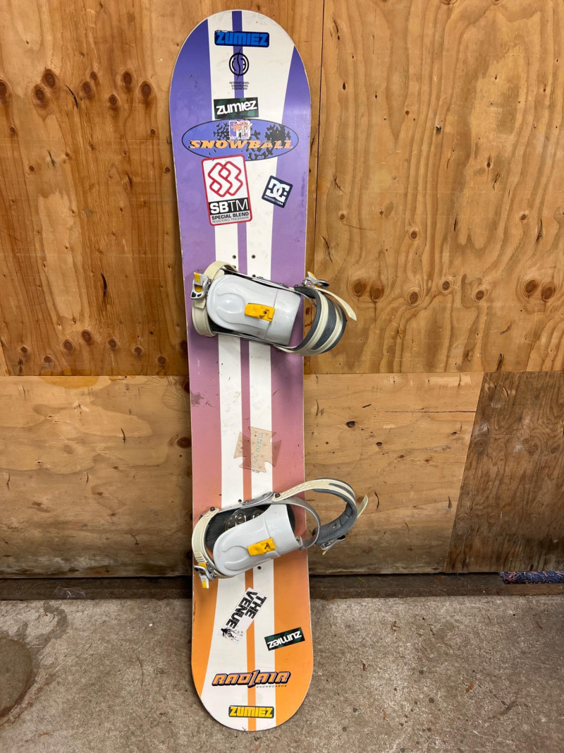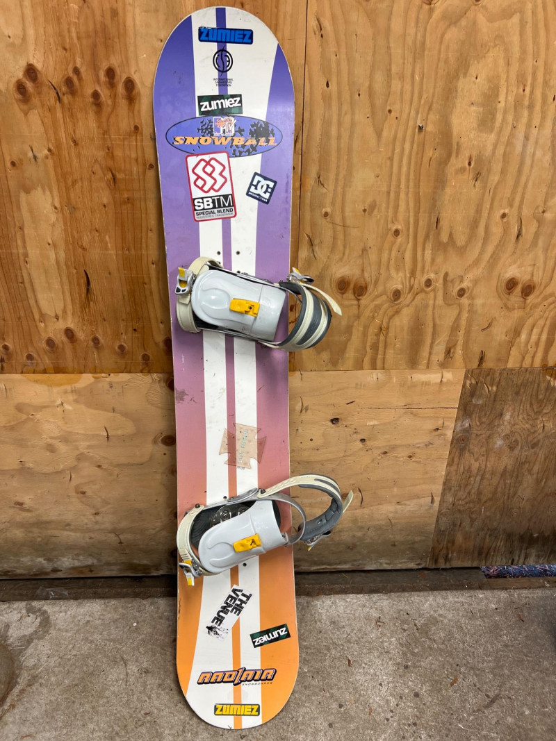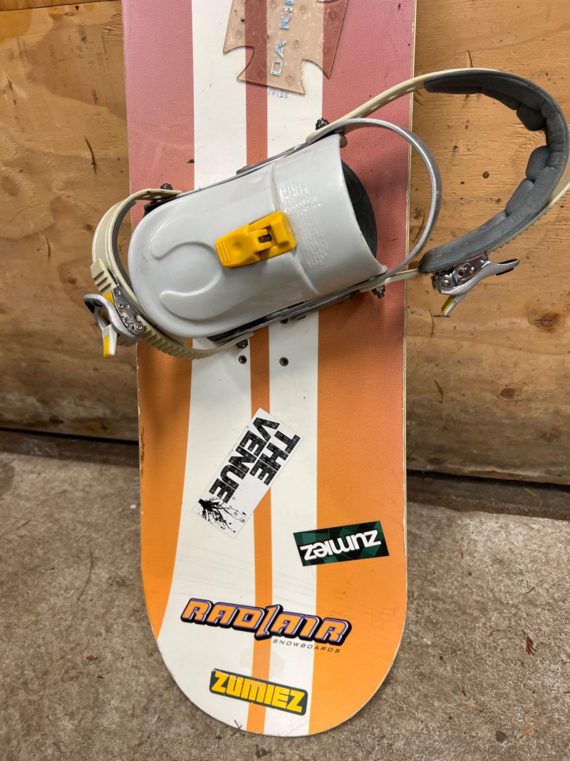 Performance‑driven Rad‑Air snowboard, paired with Zumiez/Da Kine styling for riders who value both function and design. Board: Rad‑Air model, known for stability and smooth carving. Design: Branded with Zumiez/Da Kine graphics, offering a bold, modern look. Utility: Suitable for all‑mountain riding, freestyle, or park use.