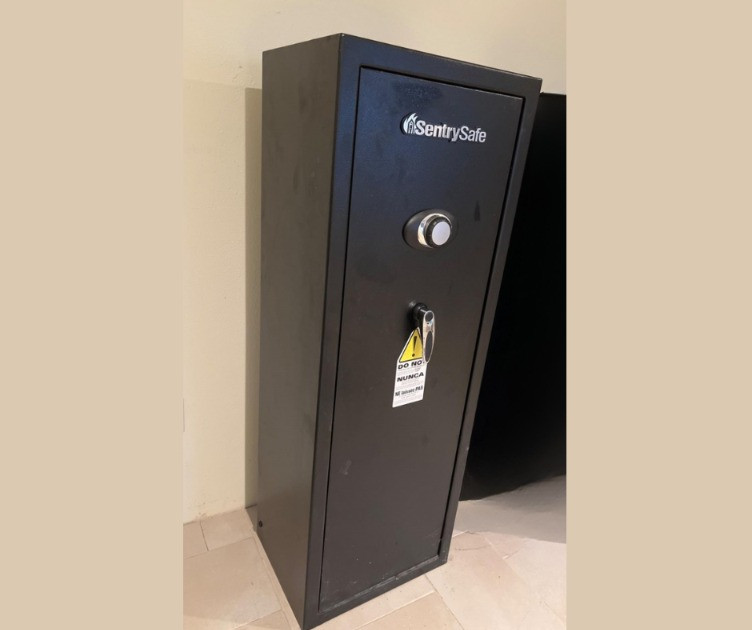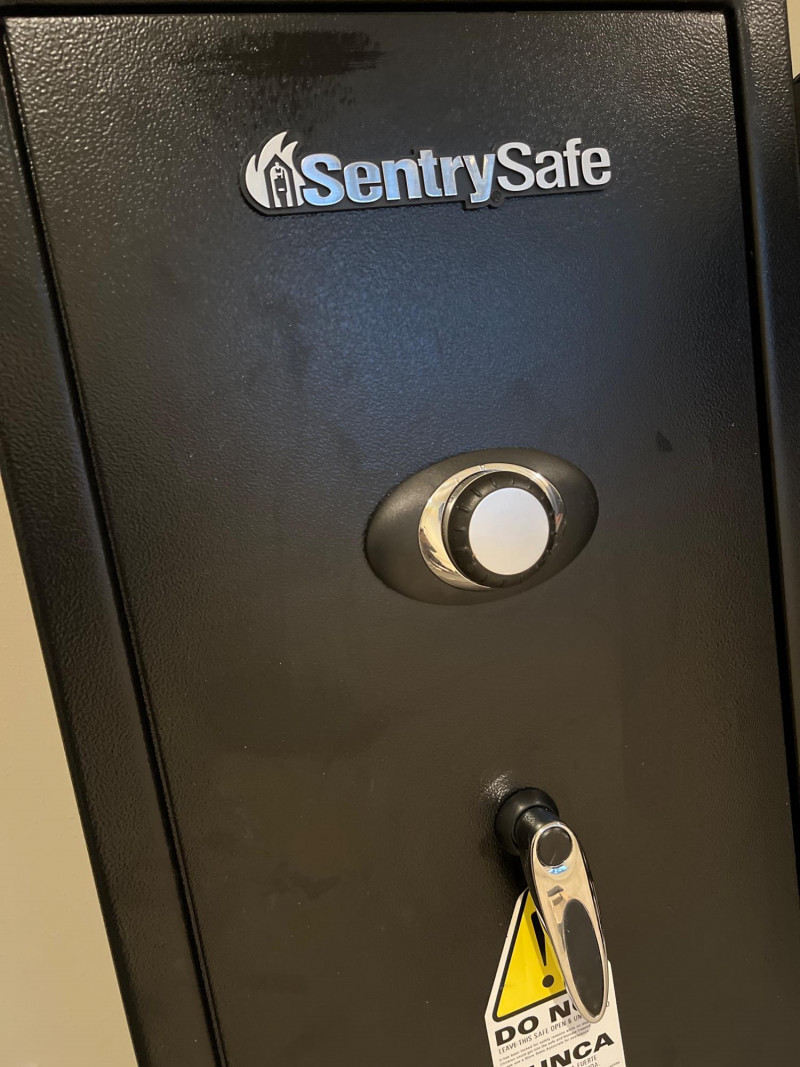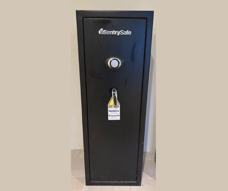Sentry Model G5241‑2B personal security safe, engineered for secure storage of handguns, firearms, and personal valuables. Compact yet durable steel construction with a dial combination lock provides reliable protection against unauthorized access. Designed for residential, office, or contractor use where firearm safety and secure storage are required.