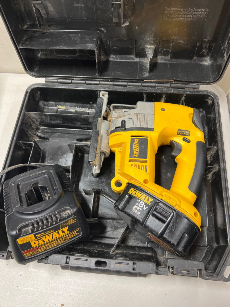 DeWalt DW933 18‑volt cordless jigsaw, supplied with its battery and charger. Compact and powerful, this jigsaw delivers smooth cutting performance across wood, laminate, metal, and composite materials. Features include: Orbital action for faster, more aggressive cuts Quick blade‑change mechanism compatible with both universal and T‑shank blades Variable speed control (0–2,000 strokes per minute) for precision or speed as needed Bevel cutting capability for angled cuts Lightweight, cordless design for portability and ease of use on jobsites This lot provides a complete, ready‑to‑use cutting solution for contractors, woodworkers, and DIY projects. Need Shipping?: Contact LoopCycle