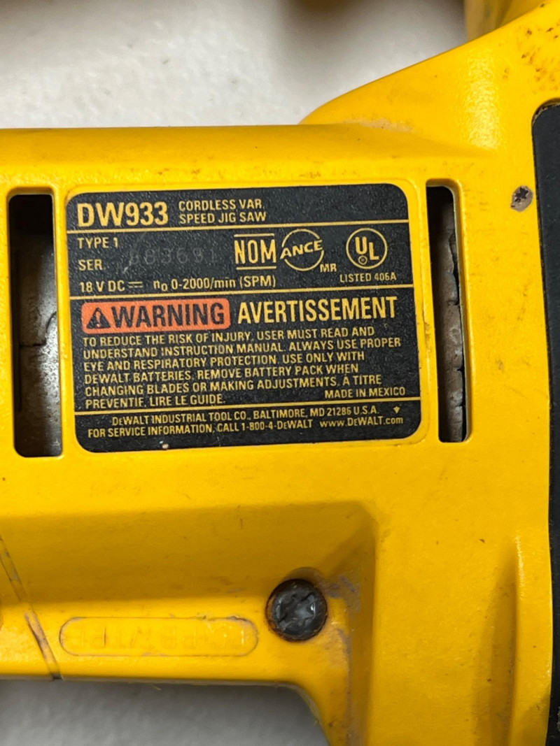 Lot # 92 - DeWalt DW933 18V Cordless Jigsaw – With Battery & Charger