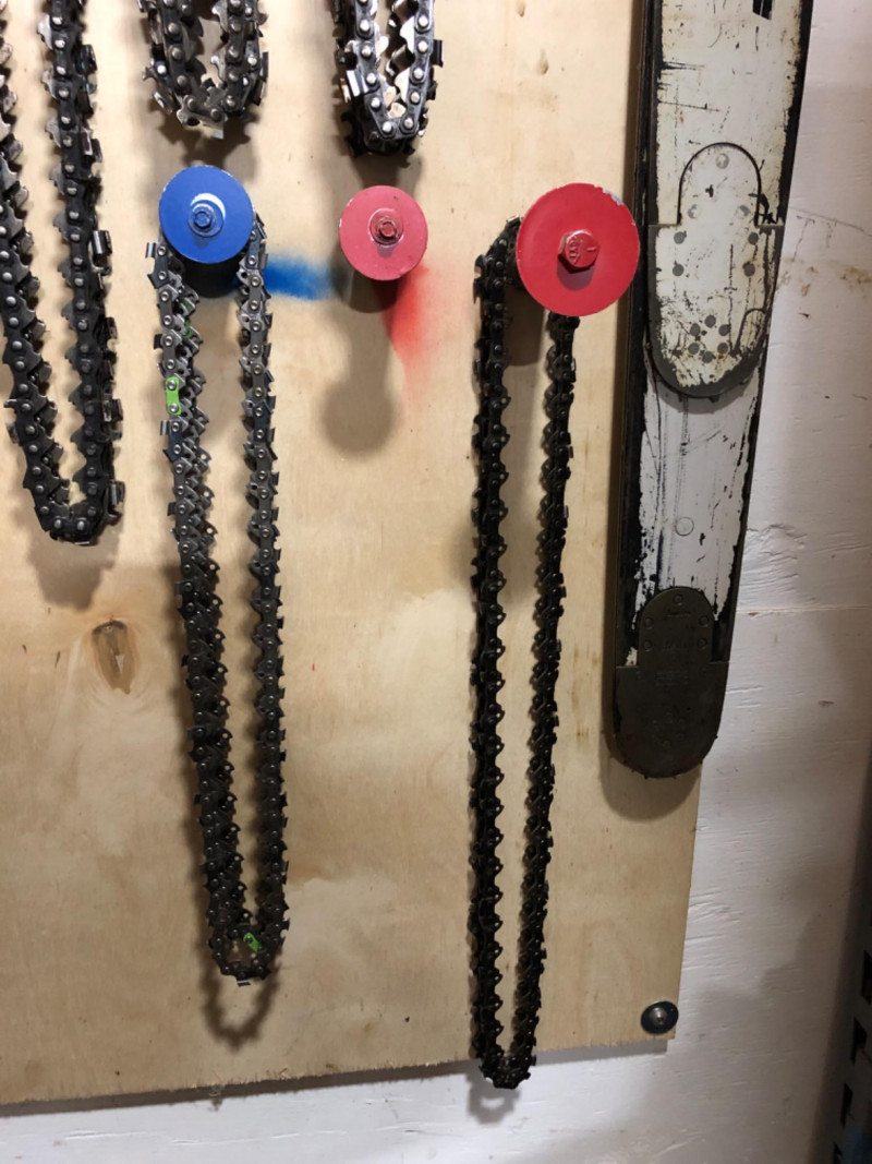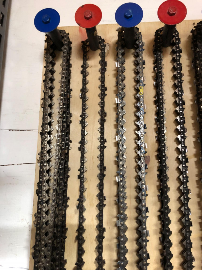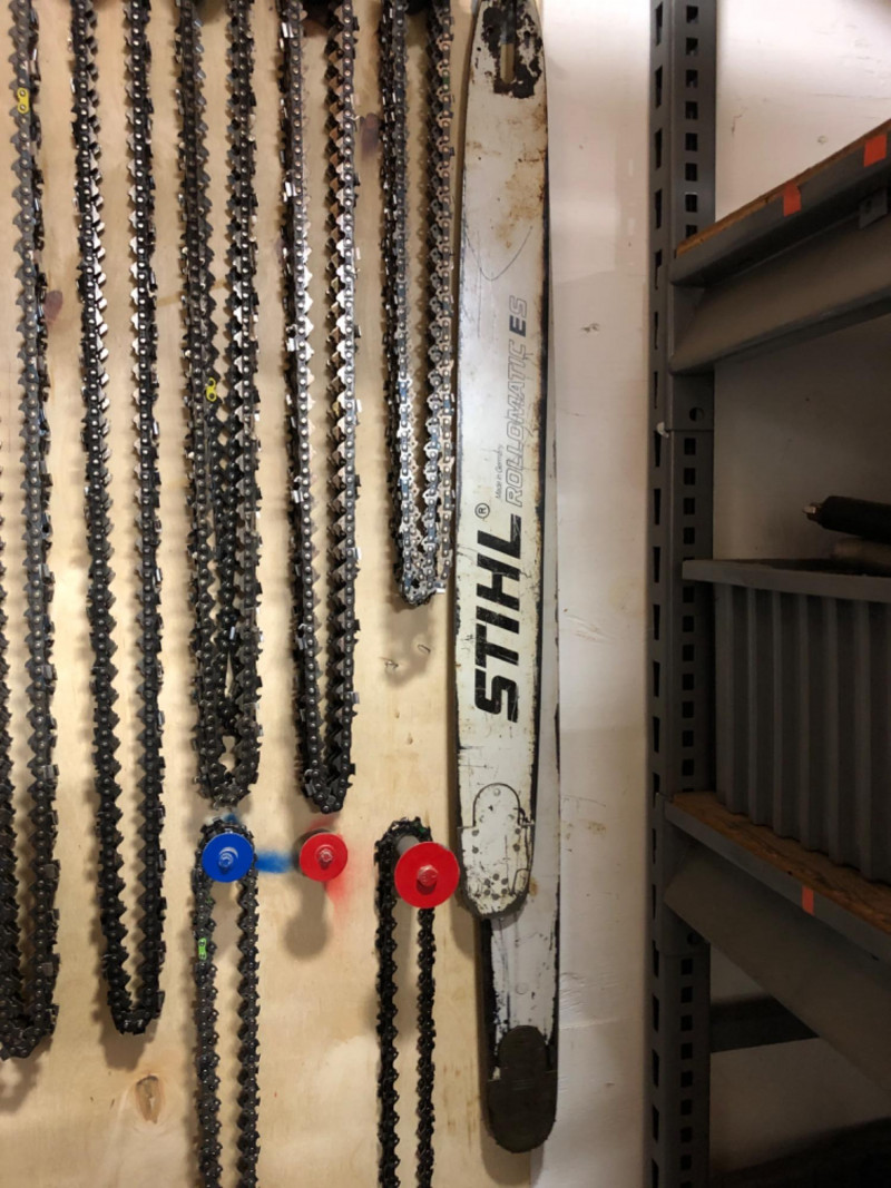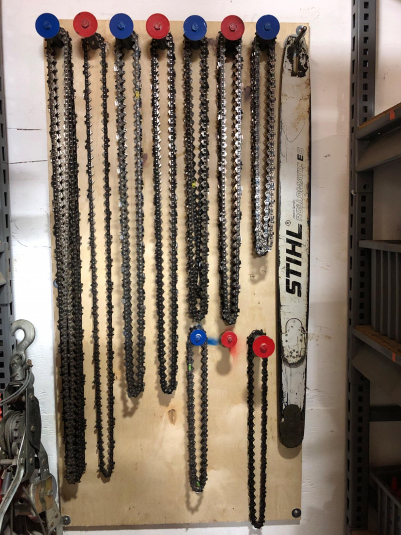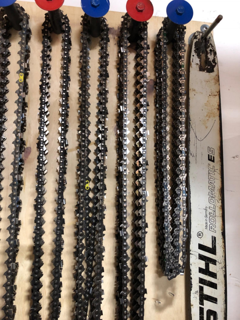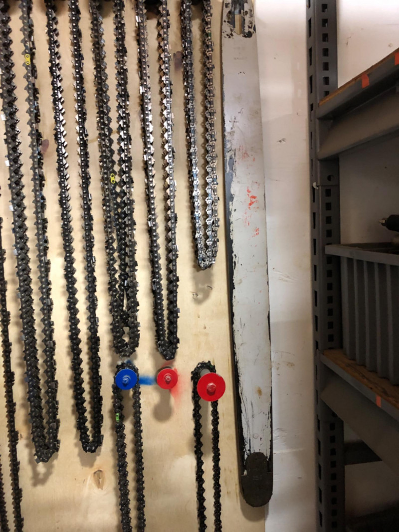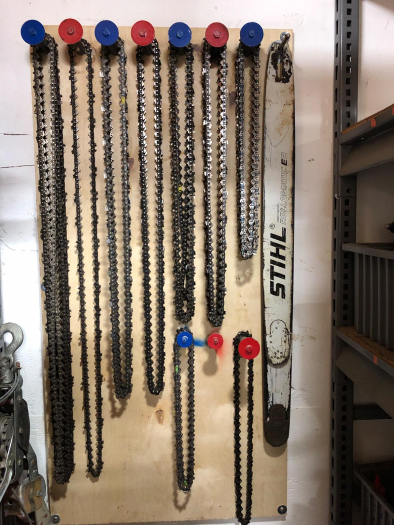 Chain Saw Chain Sizes * All sizes are closest to approximate size as possible 41” Chains - 6 of these 33” Chains - 5 of These 26” Chains - 8 of These 20” Chains - 9 of These 16” Chains - 3 of These 30” bar - 1 of These 38.5” bar - 1 of These