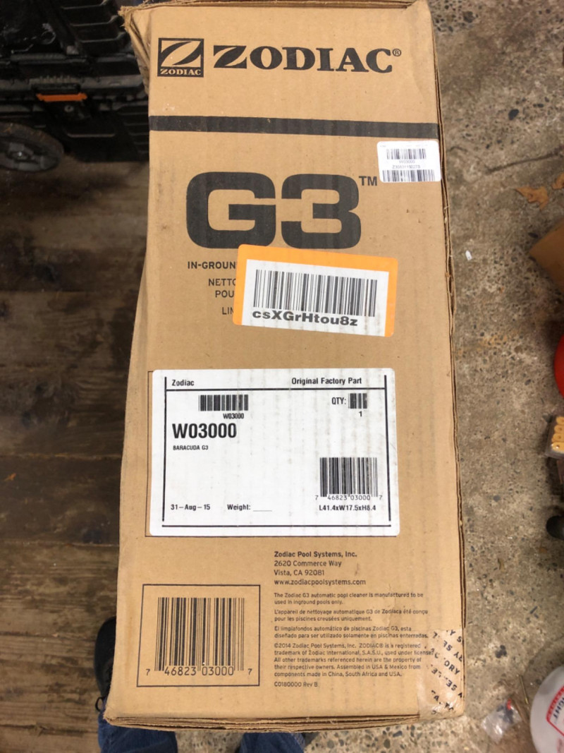 The Zodiac G3 is a highly reliable in‑ground suction pool cleaner, designed to keep pools spotless with minimal effort. It connects directly to your pool’s skimmer or dedicated suction line, using powerful suction to remove dirt, debris, and leaves from floors, walls, and steps. The unit is new in box never opened. Key Features: Quiet, powerful suction cleaning for in‑ground pools Durable diaphragm technology with only one moving part for reduced maintenance Wheel deflector for easy navigation around tight corners and steps 36‑fin disc design improves adhesion to pool surfaces and avoids getting stuck on drains or lights Quick installation – no tools required, attaches to existing pool plumbing Ideal for: residential pools, contractors servicing pool maintenance, and buyers seeking a dependable automatic cleaner This lot offers a trusted brand and proven design that simplifies pool care, ensuring crystal‑clear water with less manual work. Need Shipping?: Contact LoopCycle