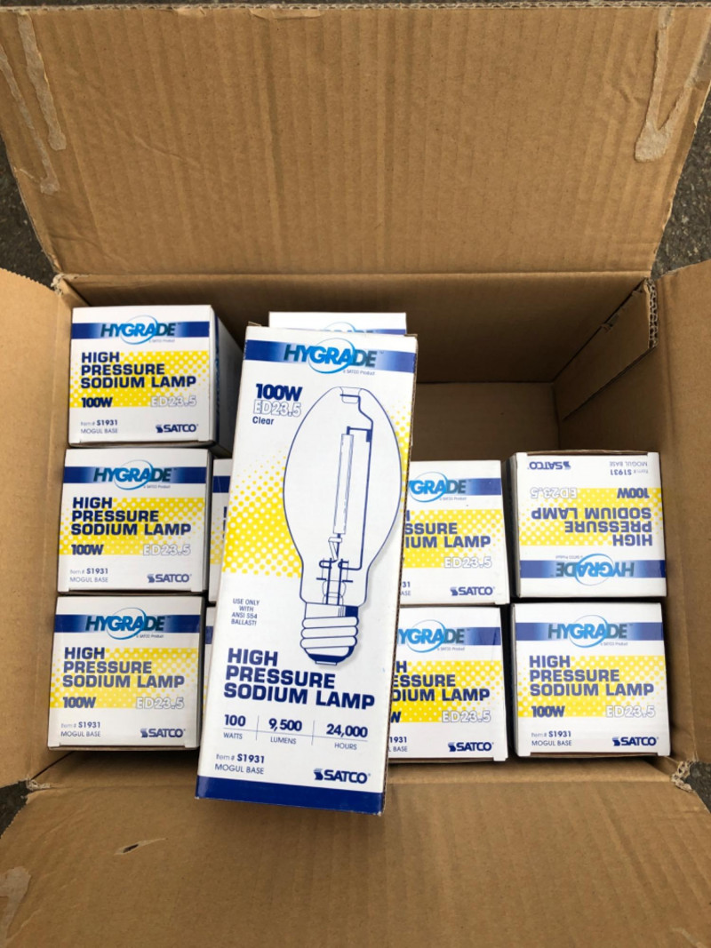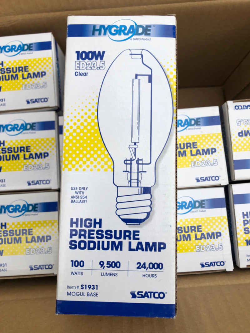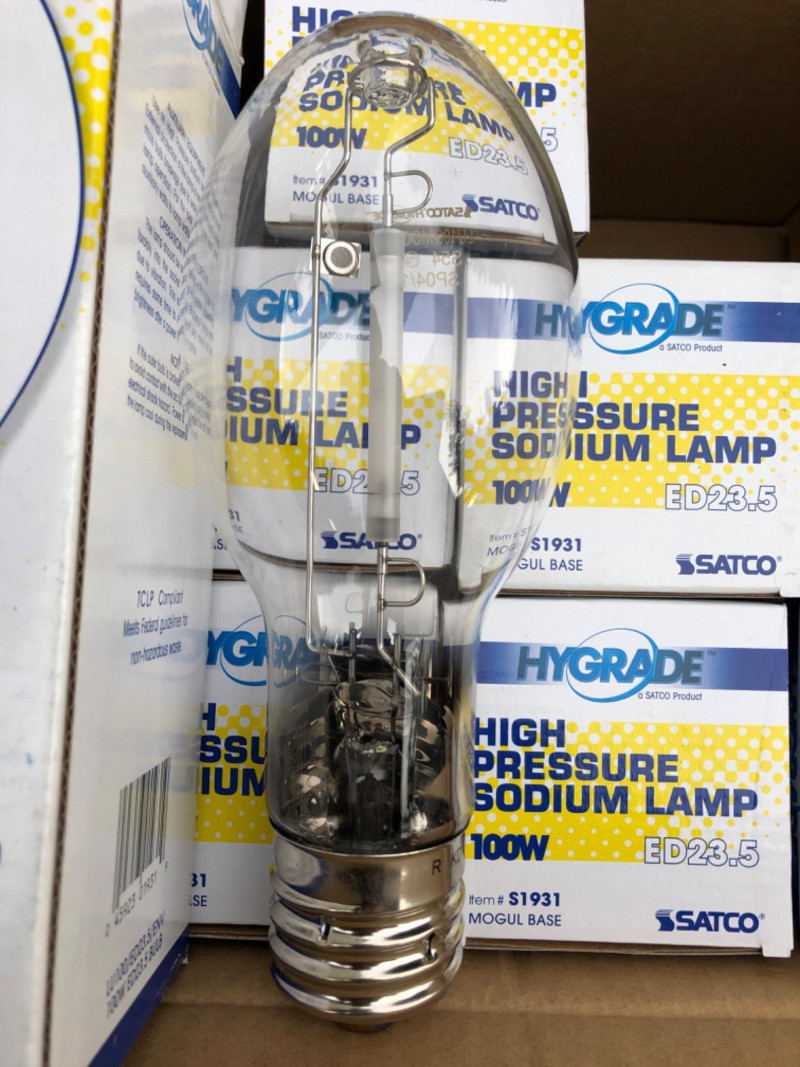Hygrade Satco 100‑watt high pressure sodium bulbs, designed for industrial, commercial, and contractor lighting applications. These bulbs deliver high lumen output with excellent energy efficiency, making them ideal for streetlights, security lighting, warehouses, and large outdoor areas. Known for their long service life and durability, high pressure sodium lamps provide reliable illumination in demanding environments. Need Shipping?: Contact LoopCycle