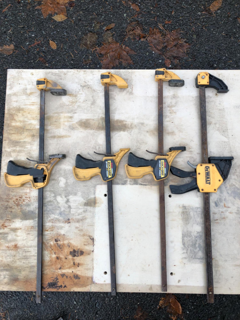 Quik grip clamps. Untested. Approximate sizes: 32” - 4 of these 12” - 7 of these 6” - 3 of these 11” - 1 of these