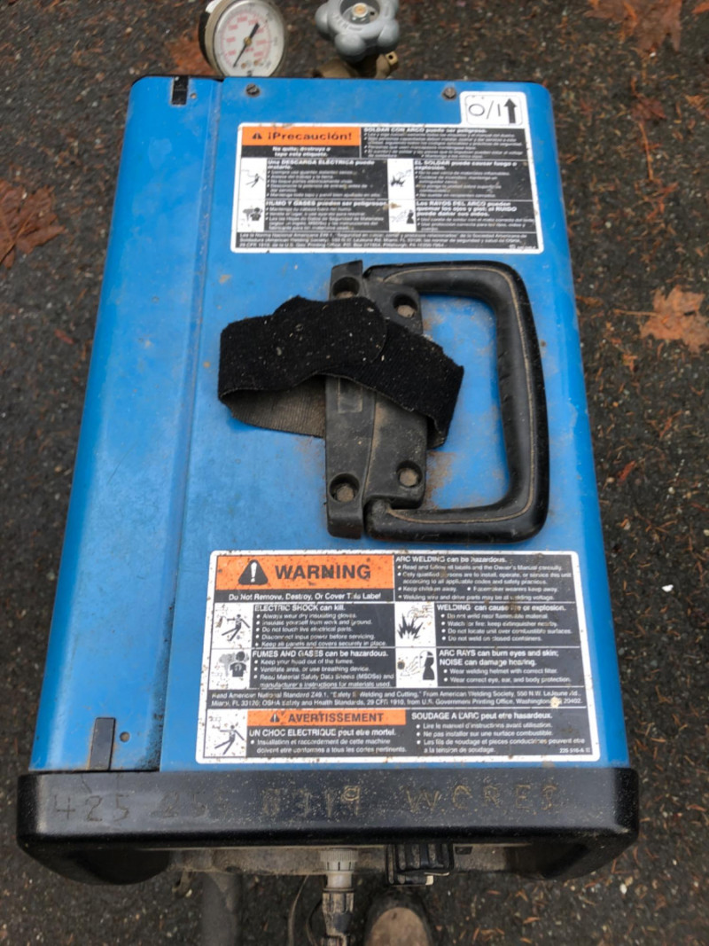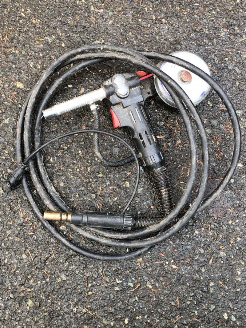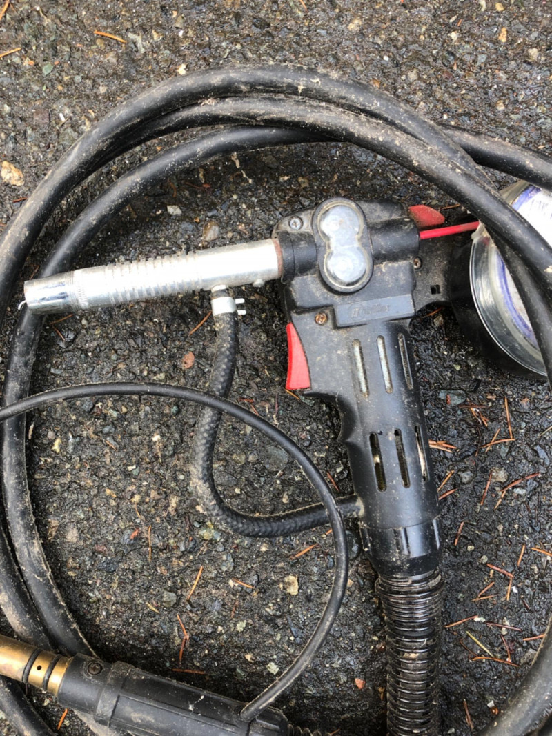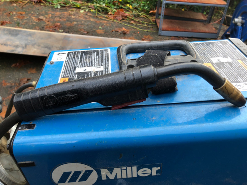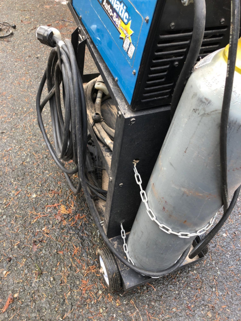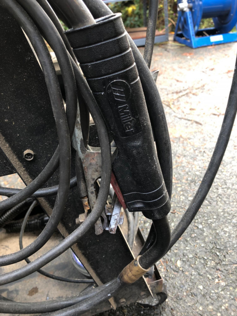 Miller Millermatic 211 single‑phase MIG welder, complete with spool and accessories. Known for its versatility and professional‑grade performance, this unit is ideal for contractors, fabricators, and shop use. Capable of welding mild steel, stainless, and aluminum, the 211 offers smooth arc starts and reliable output. Includes: Millermatic 211 Welder Spool Gun for MIG Welding Extension Cords Cart Tank Measurements Include Cart