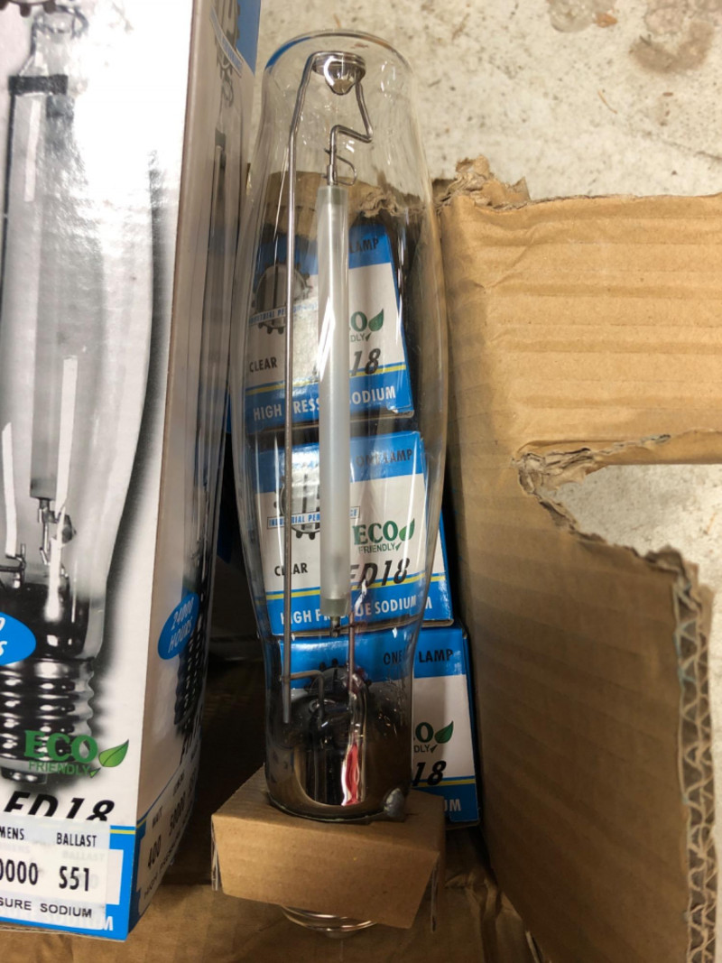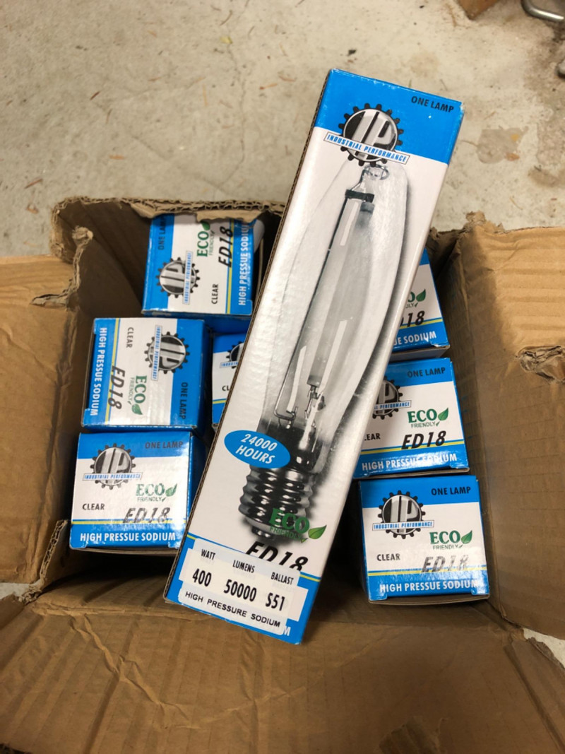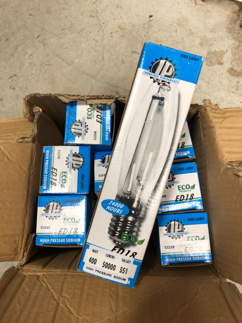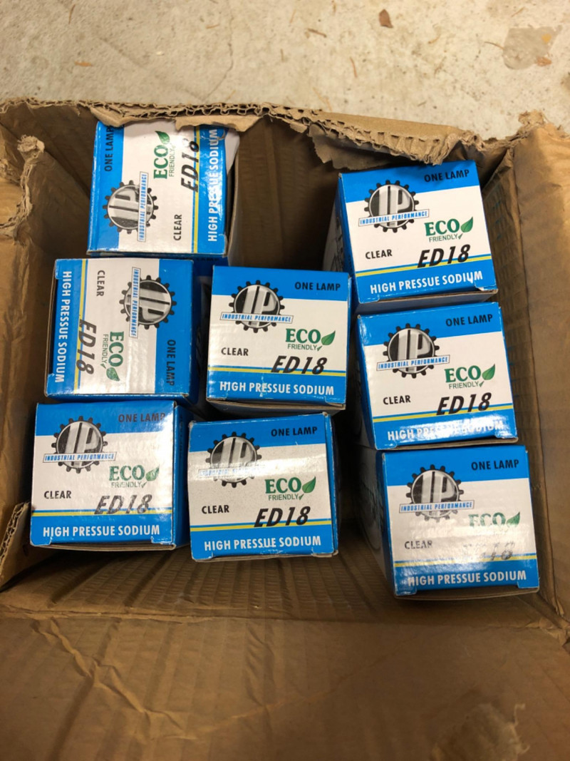 Eight 400‑watt high pressure sodium lamps, designed for industrial and contractor lighting applications. Known for high lumen output and energy efficiency, these lamps are ideal for warehouses, security lighting, and large outdoor areas.