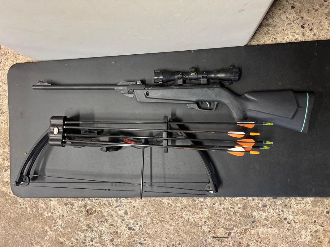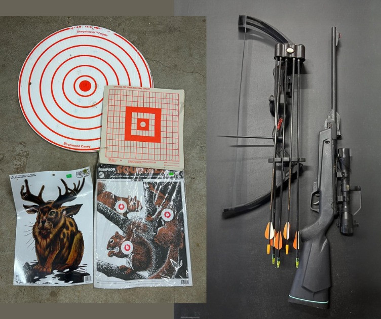 Complete Cadet Delta Gamo air rifle set, paired with a JTR bow and assorted targets for practice and sport. Air Rifle: Cadet Delta Gamo model, 36" length, designed for precision and durability. Case: Protective rifle case included for safe storage and transport. Bow: JTR bow, 27" length, suitable for target practice. Targets: Assorted practice targets included for immediate use. Category: Sporting goods – ideal for recreational shooting and archery enthusiasts.