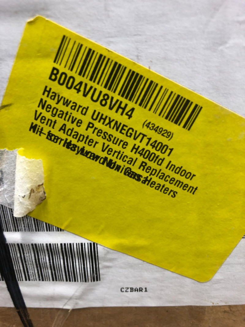 Hayward vertical replacement vent adapter, model UHXNEGVT14001. Designed for negative pressure indoor venting applications. Need Shipping?: Contact LoopCycle
