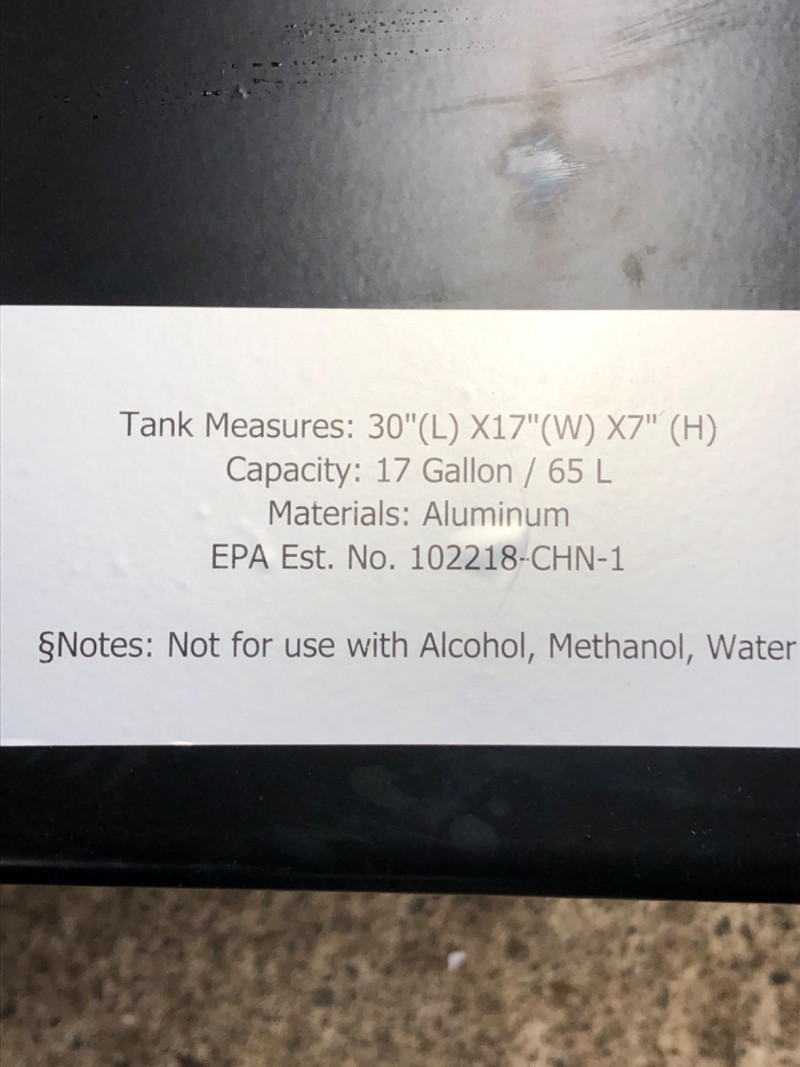 Heavy‑duty 17 gallon metal gas tank. Brand new, never used, with no dents. Suitable for vehicles, boats, or utility applications.