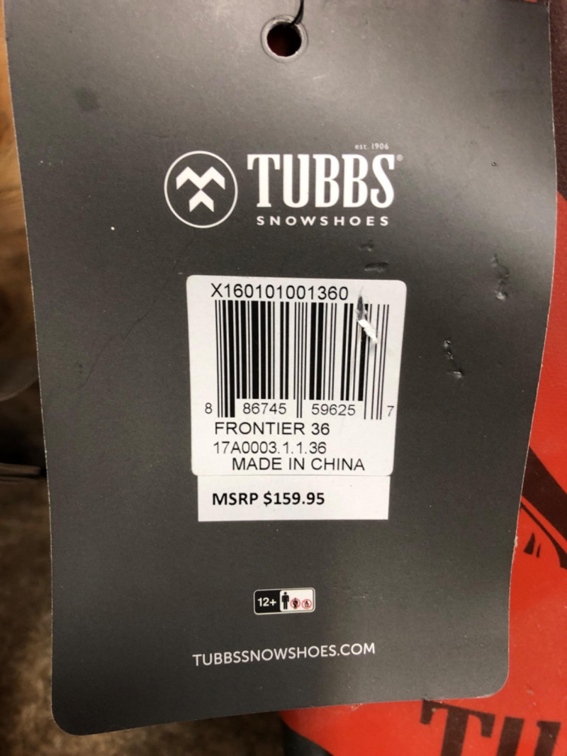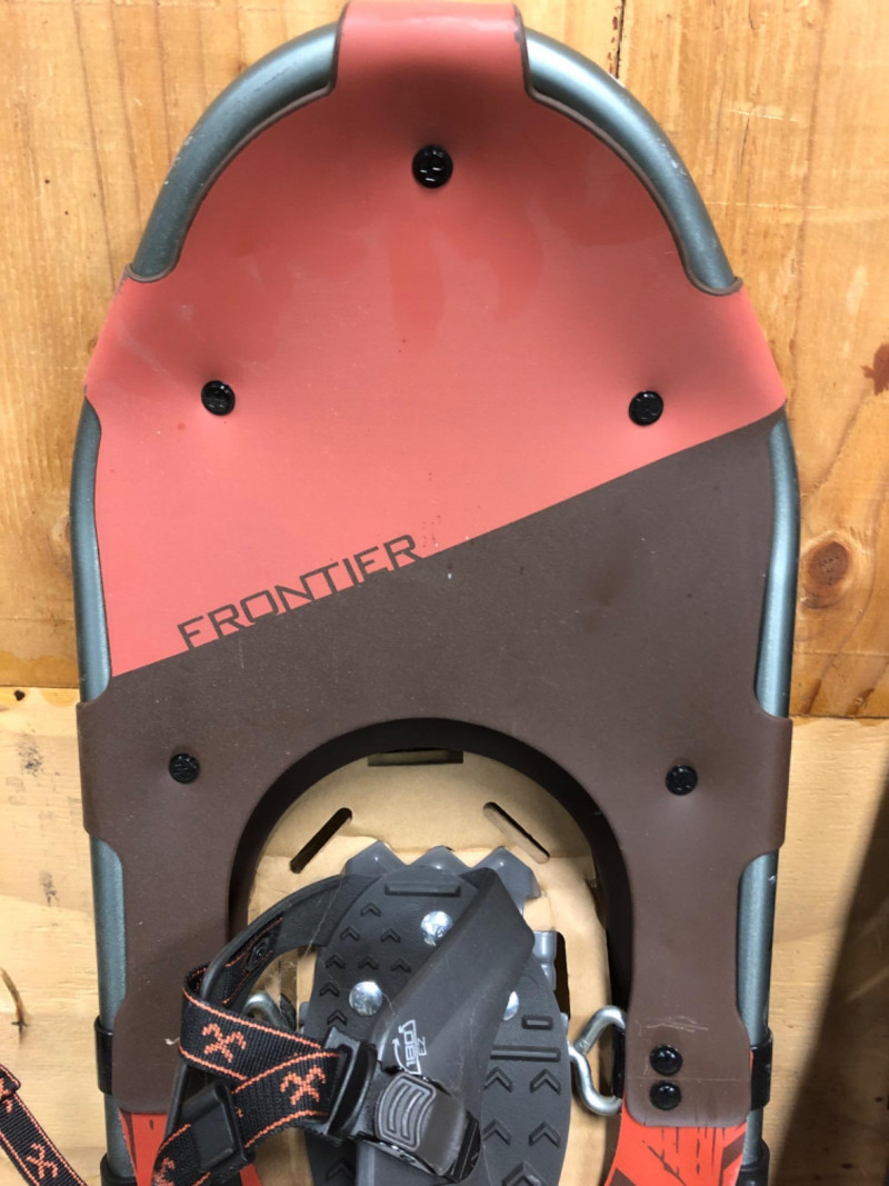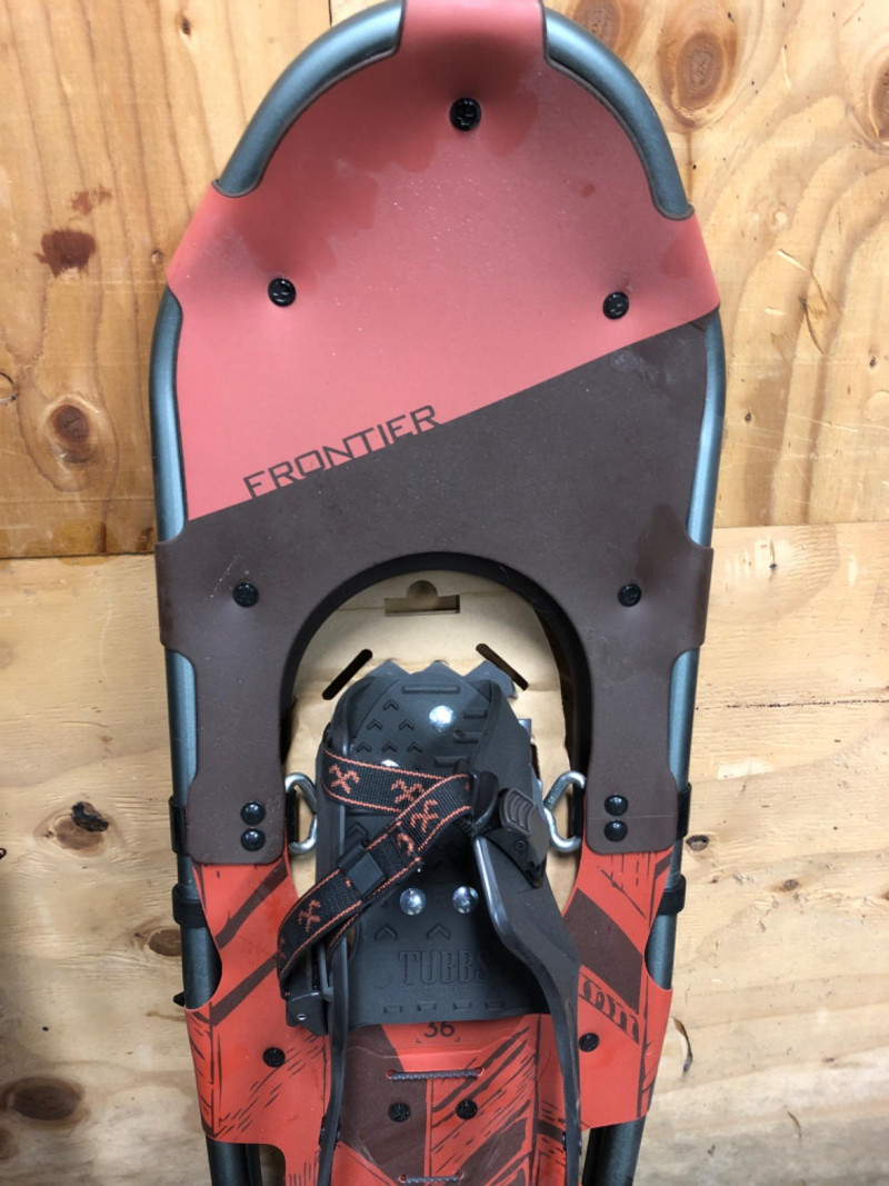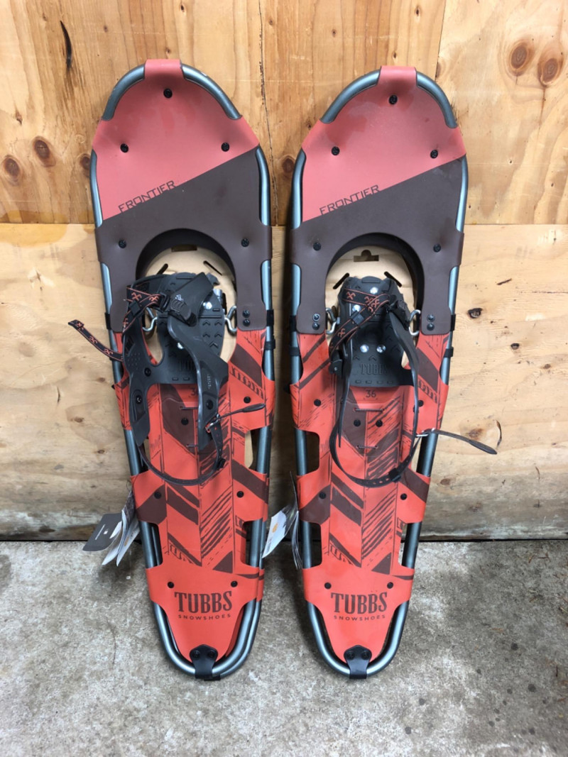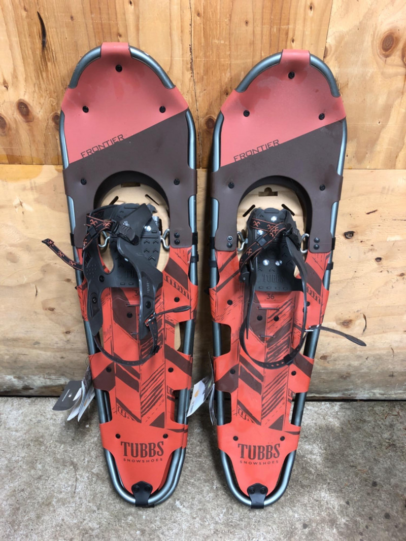 Pair of Tubbs Frontier snowshoes, brand new and ready for winter adventure. Performance: Lightweight aluminum frame with durable decking for stability on packed snow and trails. Utility: Designed for recreational snowshoeing; ideal for beginners and seasoned hikers alike. Features: Easy‑to‑use bindings, ergonomic shape, and reliable traction for secure footing. Condition: Brand new; never used.