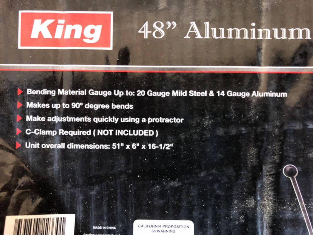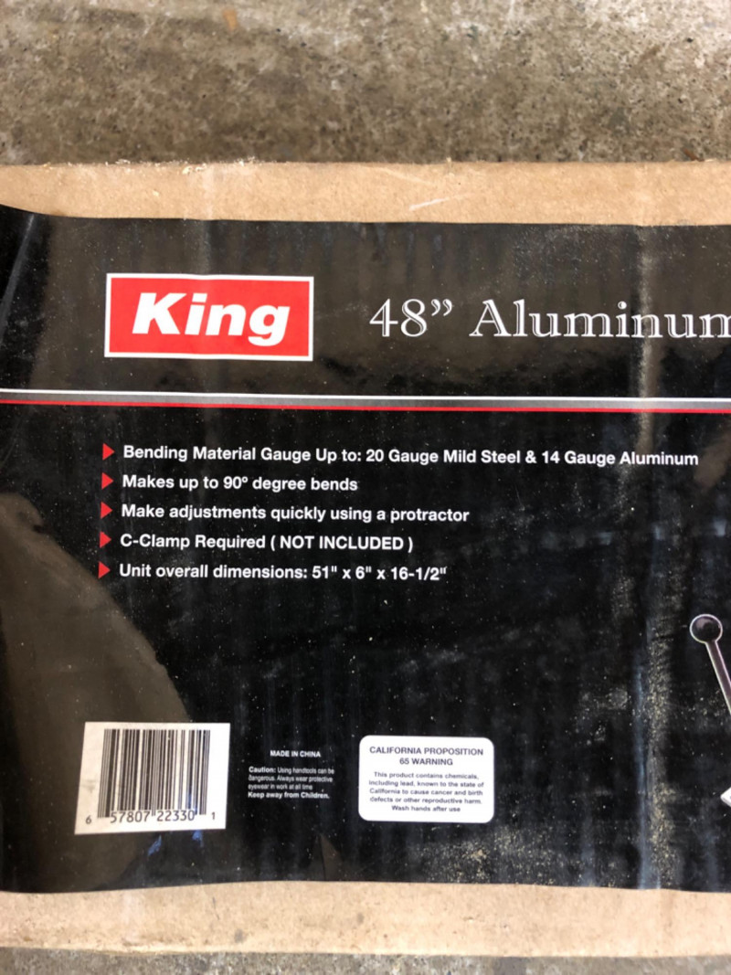 King 48" aluminum metal bender, model 2238‑0. Brand new in box. Designed for precision bending of sheet metal in contractor and industrial applications.