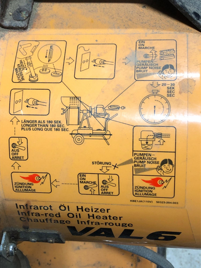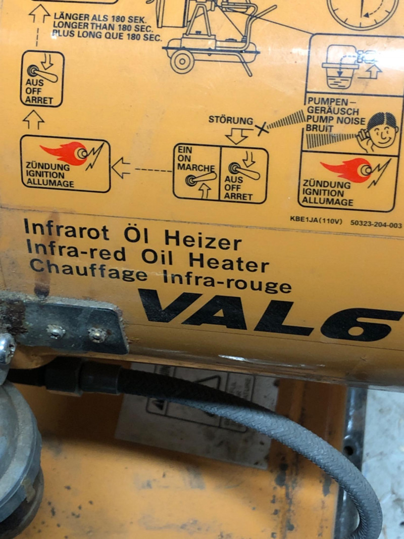 The Shizuoka Seiki Val6 kerosene gun type oil burner is a professional‑grade infrared heater engineered in Japan for powerful, efficient, and clean radiant heat. Performance: Delivers up to 111,000 BTU/h of radiant heat, warming objects directly rather than just the air. Fuel Efficiency: Consumes ~0.85 gallons/hour, converting nearly all fuel into energy with odorless combustion. Wind Resistant: Radiant heat is unaffected by wind, making it ideal for outdoor or drafty jobsite environments. Portability: Compact design with integrated fuel tank (~9 gallons) and 120V ignition system for easy contractor use. Applications: Perfect for construction sites, workshops, warehouses, and industrial projects requiring reliable, dust‑free heating. Trusted worldwide, the Val6 series is known for durability, comfort, and efficiency — a standout contractor heating solution.