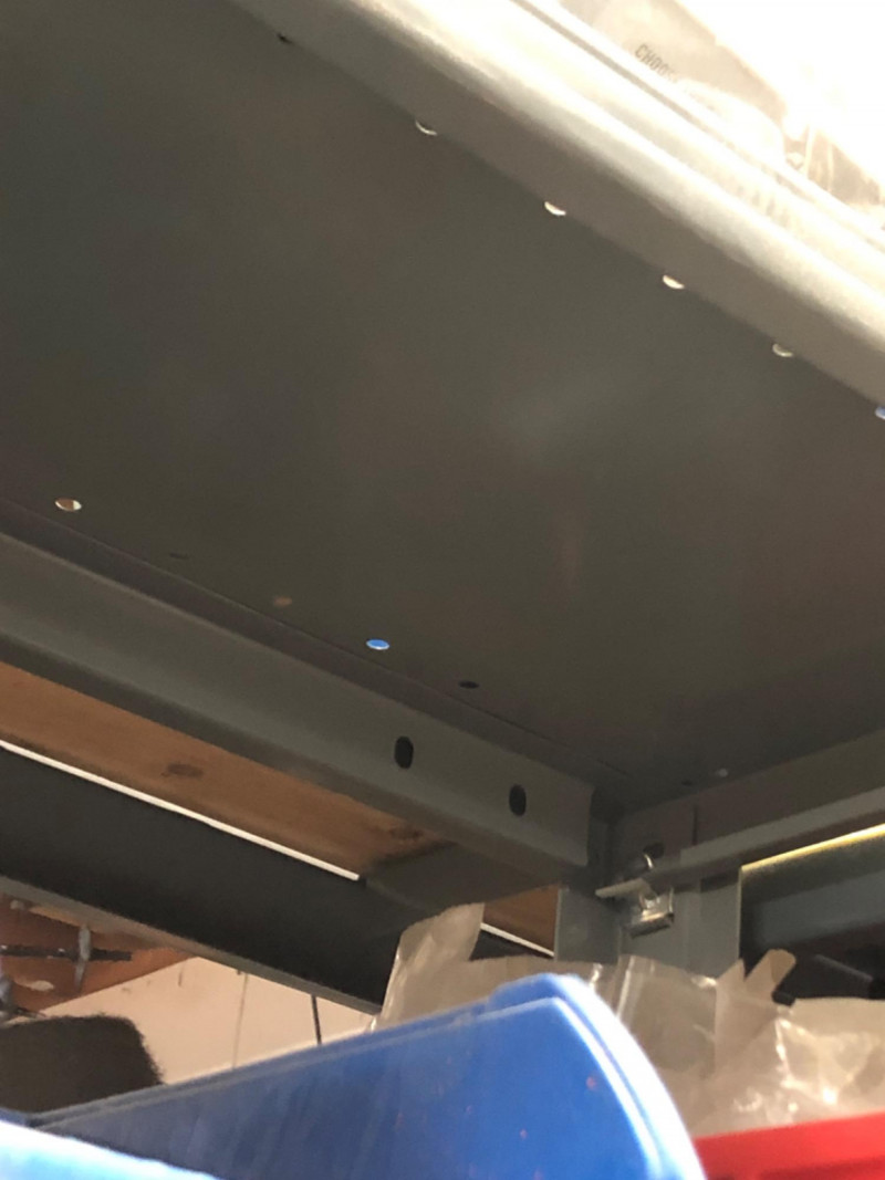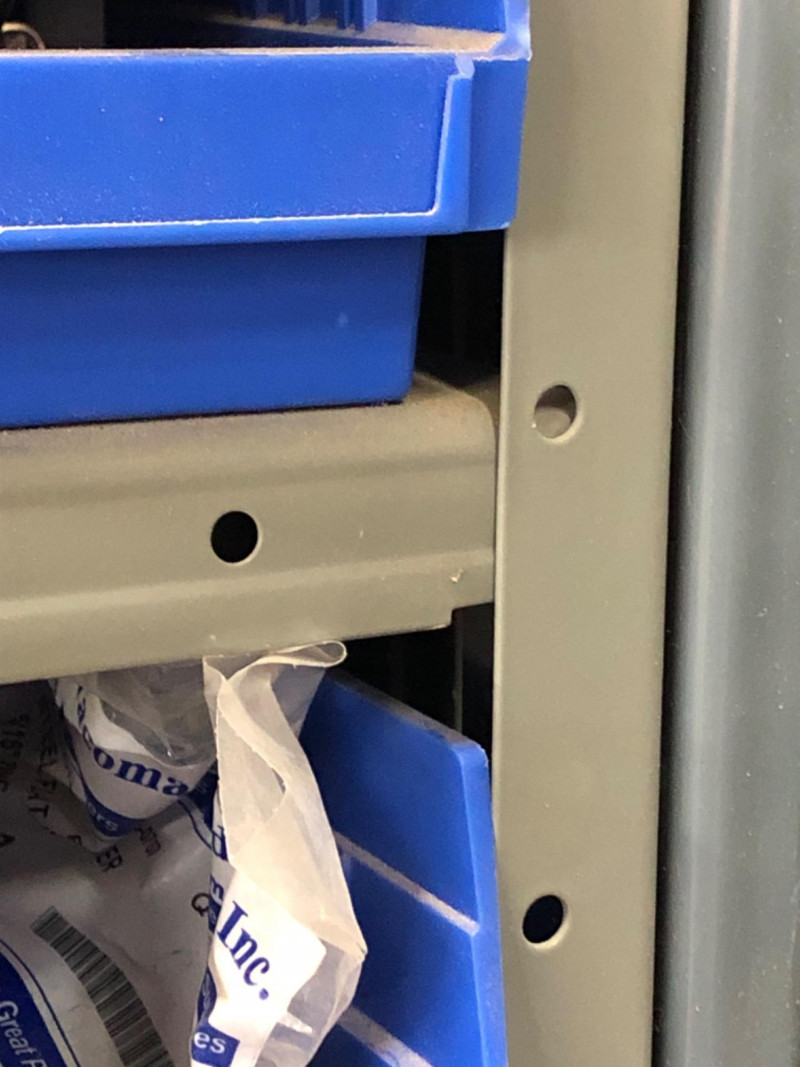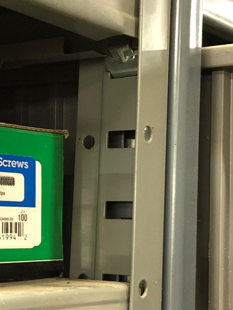 Heavy‑duty industrial metal shelving unit with 13 shelves. Durable contractor storage solution for tools, hardware, and shop supplies. Does not include blue bins or hardware variety. These will be available at pickers sale post auction. Special Note: Unit appears to be assembled with interlocking rails and supports. Metal shelves. Buyer dissassembles unit or brings vehicle that can transport unit as is. Located at parking lot level and near large bay door of shop structure. Preference is for buyer to arrange for pickup early on first day of pickups or later on last day of pickups.