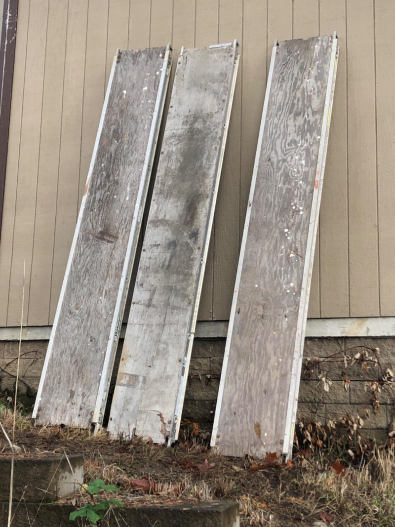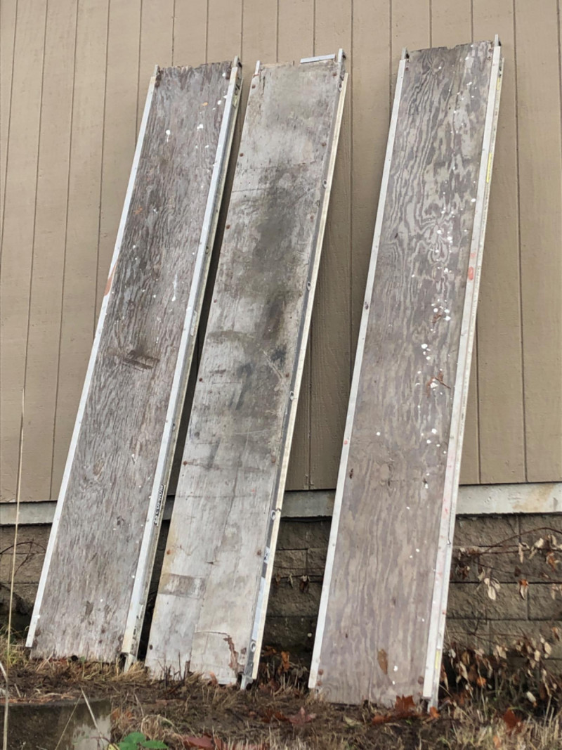 Three fixed scaffold decks/walkways. Durable contractor access tools for scaffolding and elevated work projects.