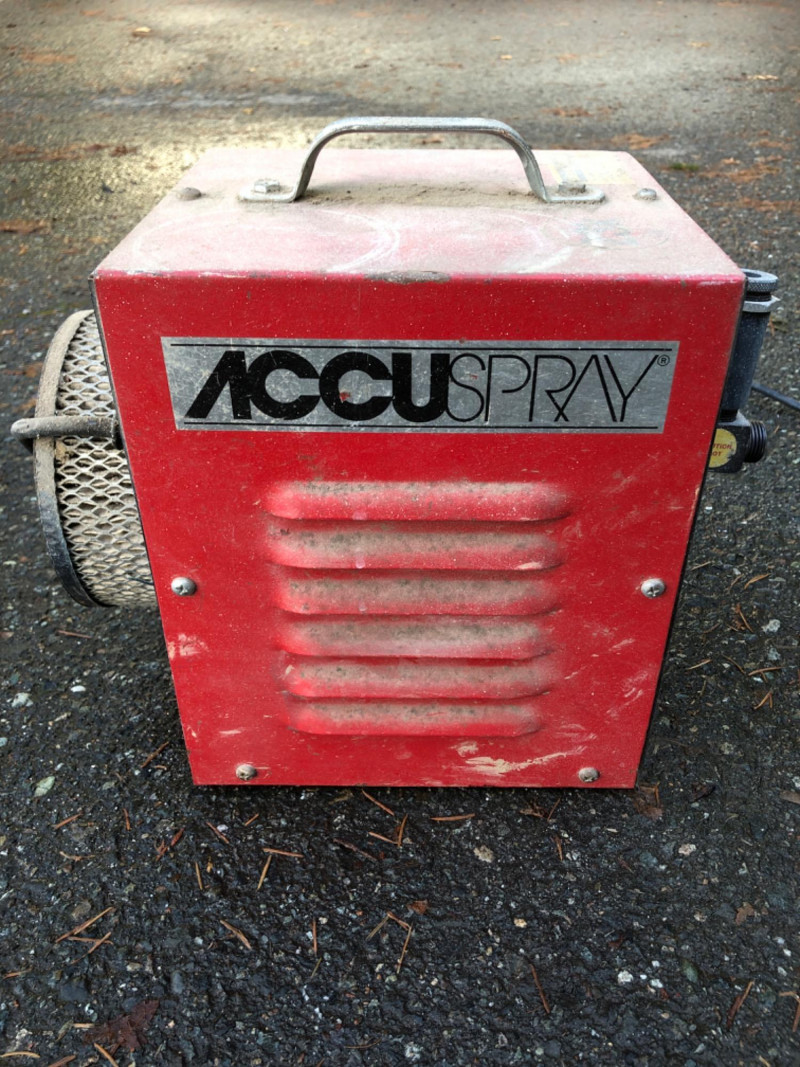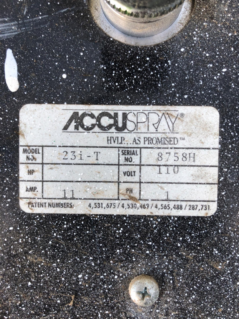 Professional‑grade High Volume Low Pressure (HVLP) AccuSpray paint sprayer, engineered for precision finishing in contractor and industrial applications. Performance: HVLP technology delivers fine atomization with reduced overspray, ensuring smooth, even coverage. Efficiency: Designed to maximize paint transfer while minimizing waste, saving time and materials. Utility: Ideal for cabinetry, furniture, automotive, and contractor finishing projects requiring professional results. Condition: Tested and powers on, ready for contractor use.