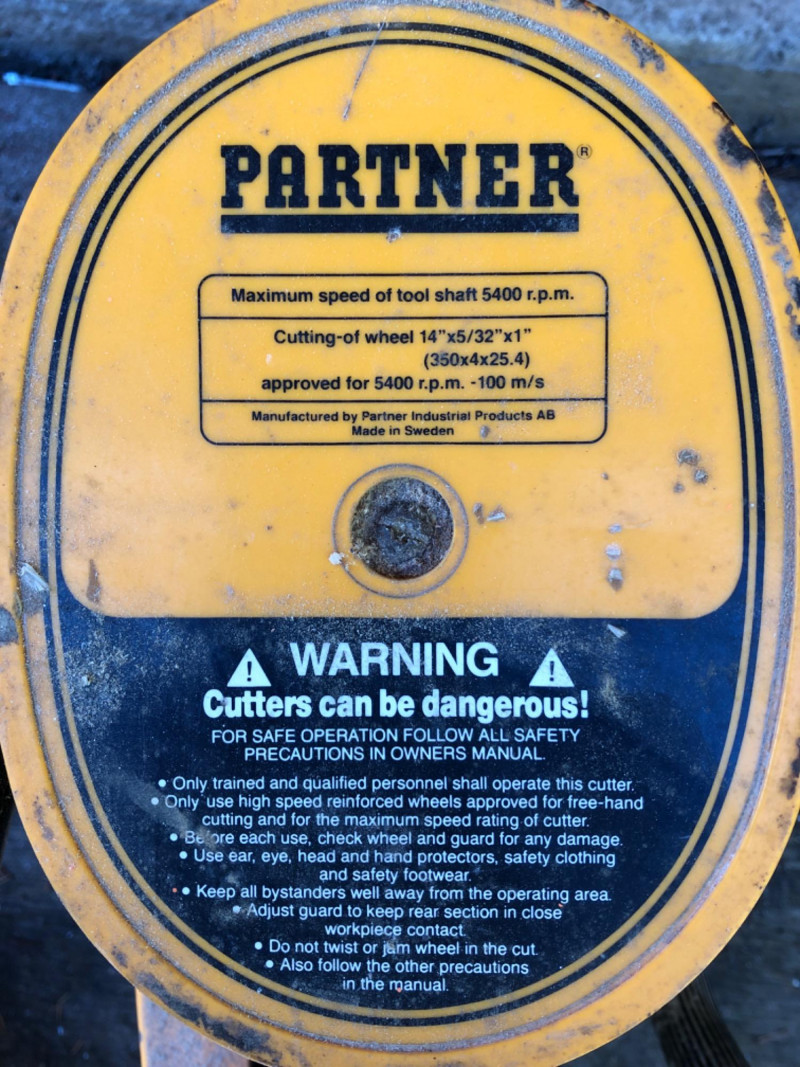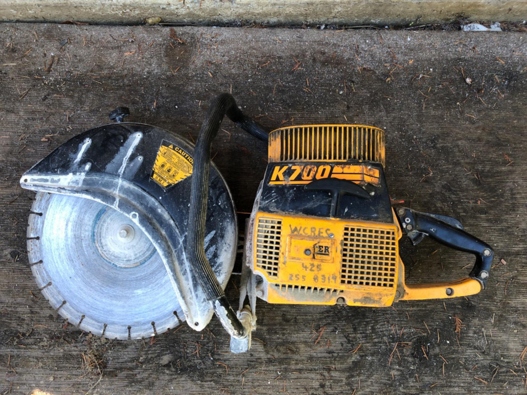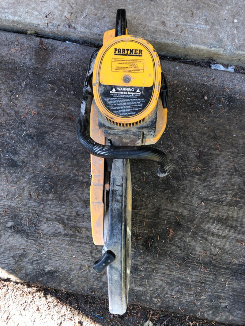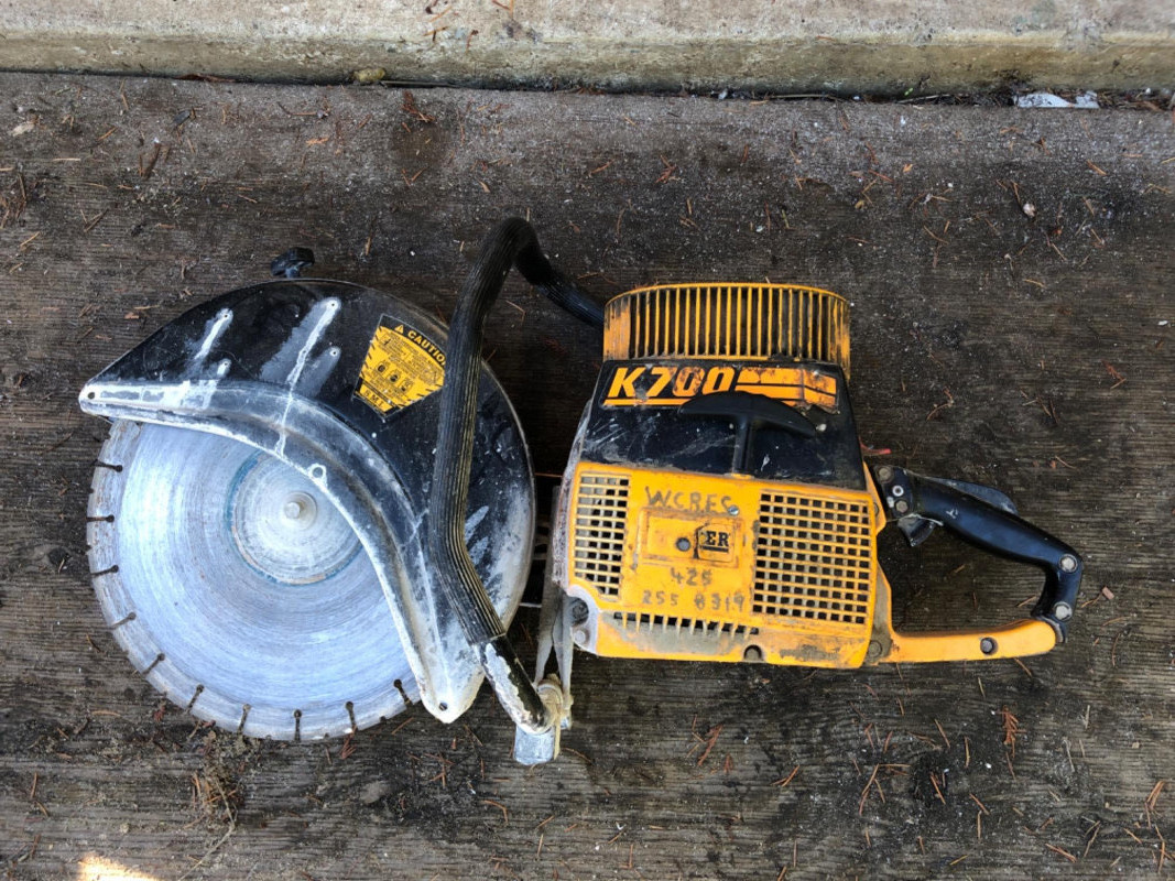 Heavy‑duty Partner K700 gas powered concrete saw, engineered for cutting through concrete, masonry, and other tough materials. Performance: High‑torque engine delivers reliable power for demanding contractor applications. Utility: Ideal for demolition, roadwork, and industrial projects requiring precision concrete cutting. Durability: Rugged construction built to withstand jobsite conditions. Condition: Not tested; sold as‑is.