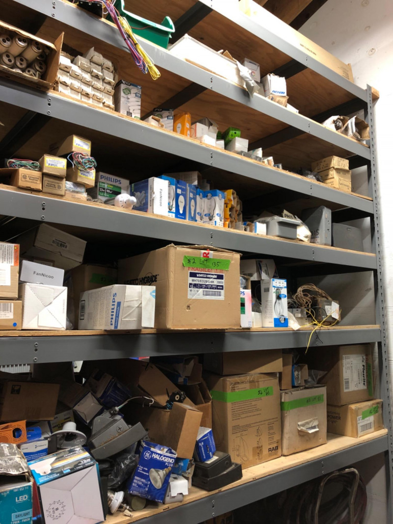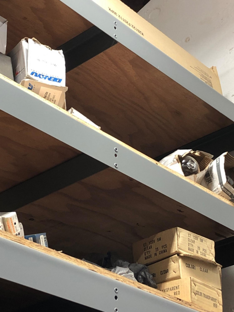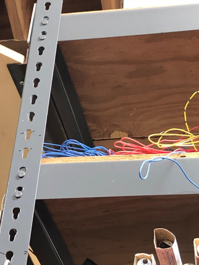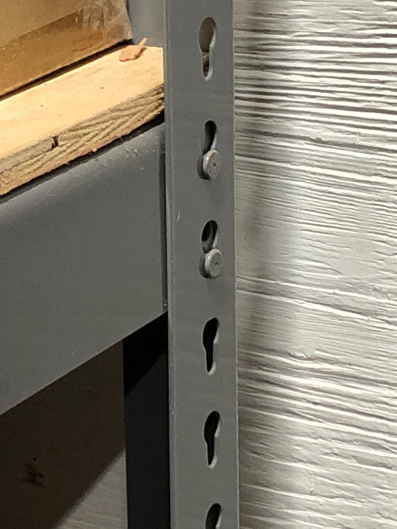 Contractor‑grade industrial shelving unit with 6 shelves. Provides ample storage for tools, hardware, and supplies. Does not include any items on shelves. Organization unit only. Special Note: Unit appears to be assembled with interlocking rails and supports. Metal rails and removable wood shelves. Buyer disassembles unit or brings vehicle that can transport unit as is (see dimensions). Located at parking lot level and at back of shop structure. Preference is for buyer to arrange for pickup late on last day of pickups.