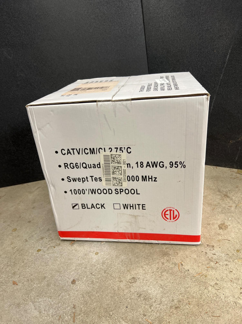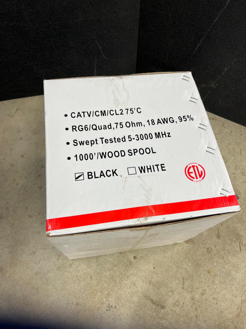 Lot # 189 - CATV Black 1000 Feet on Wood Spool - Unopened Box