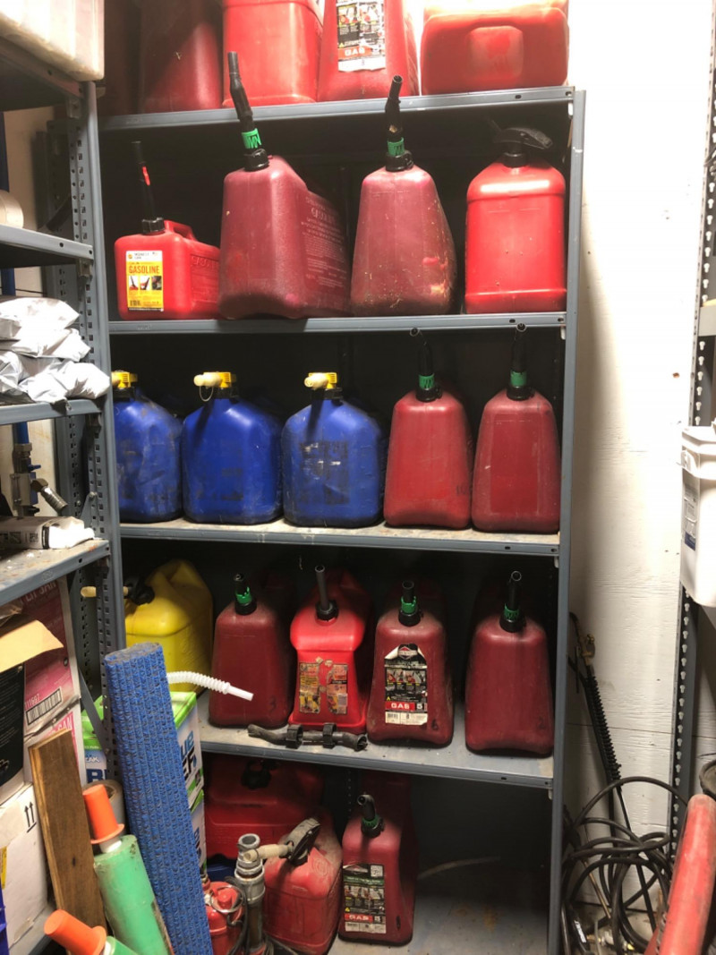 Lot # 191 - Metal Organization Unit with 5 Shelves & 20 Fuel Containers