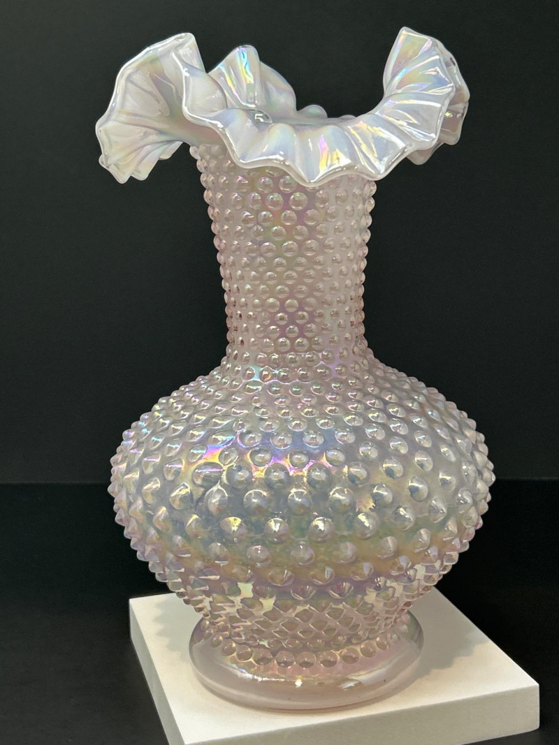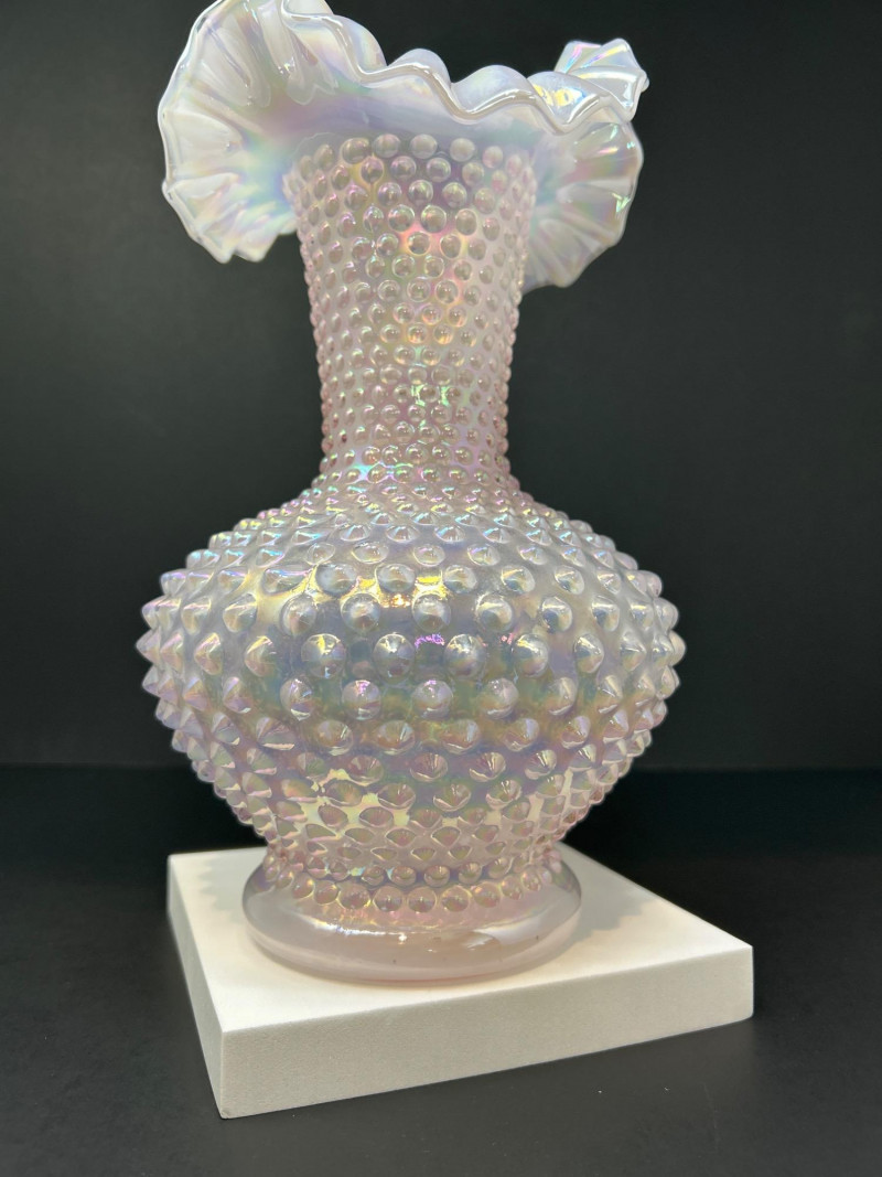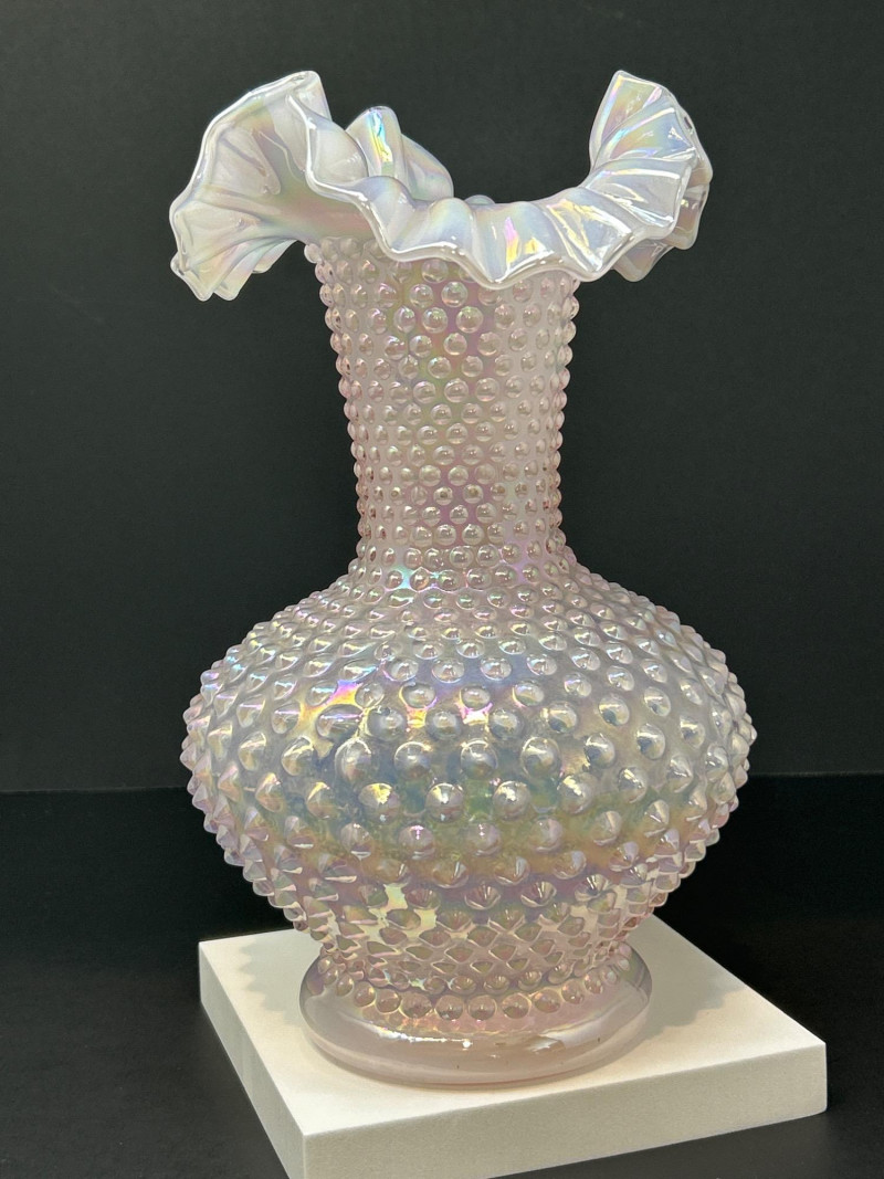 Lot # 113 - Fenton Pink Iridescent Hobnail Vase – Ruffled Rim, Opalescent Finish