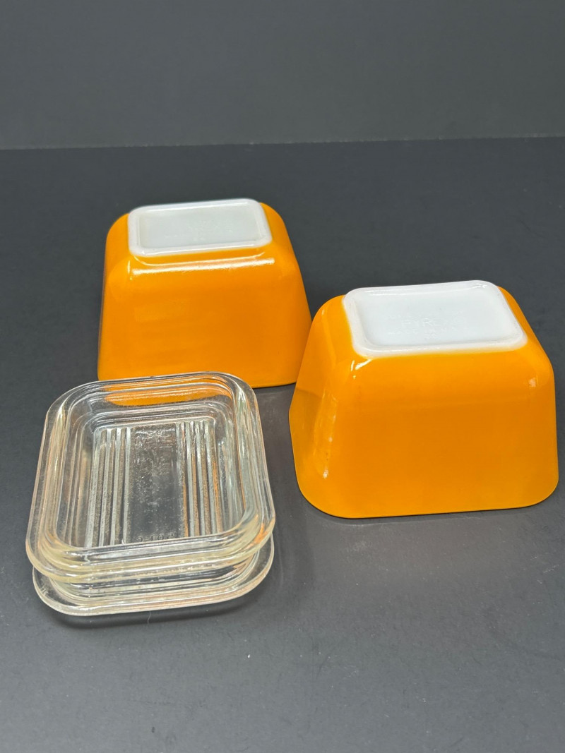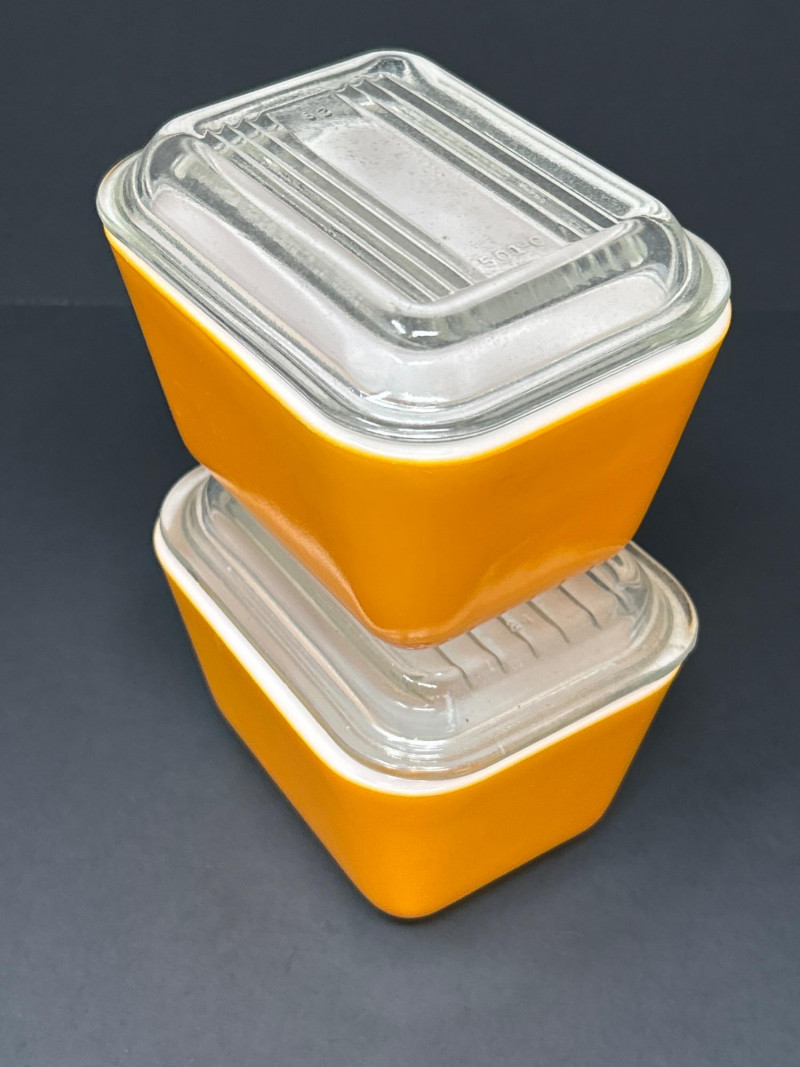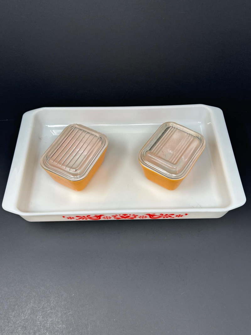 Lot # 12 - Pyrex “Friendship” 933 Lasagna Pan with Two 501-B Orange Fridgies