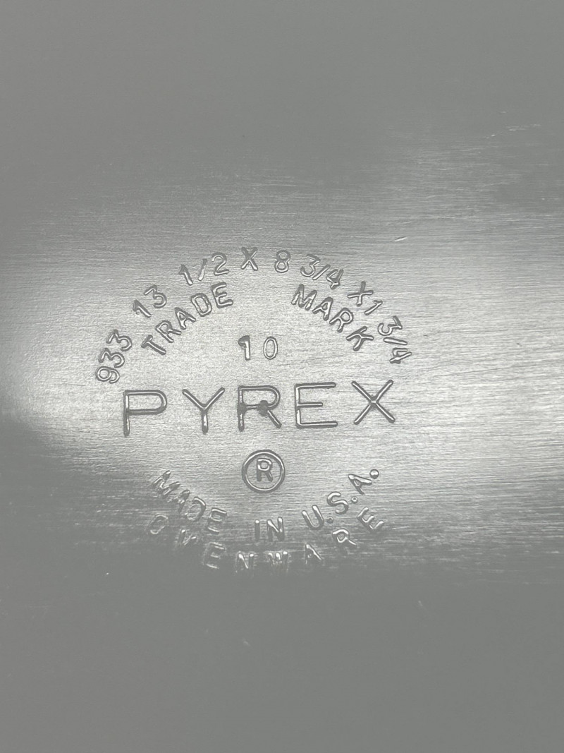 • “933 13 ½ × 8 ¾ × 1 ¾ PYREX Made in U.S.A. Ovenware”