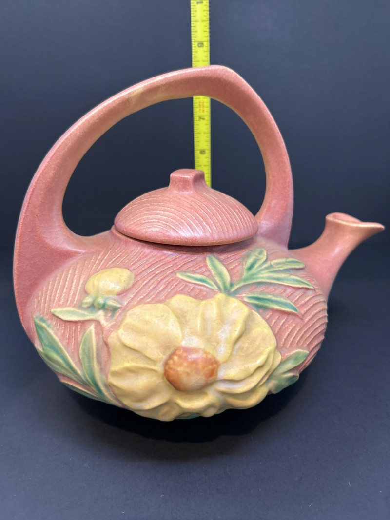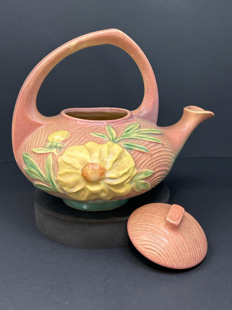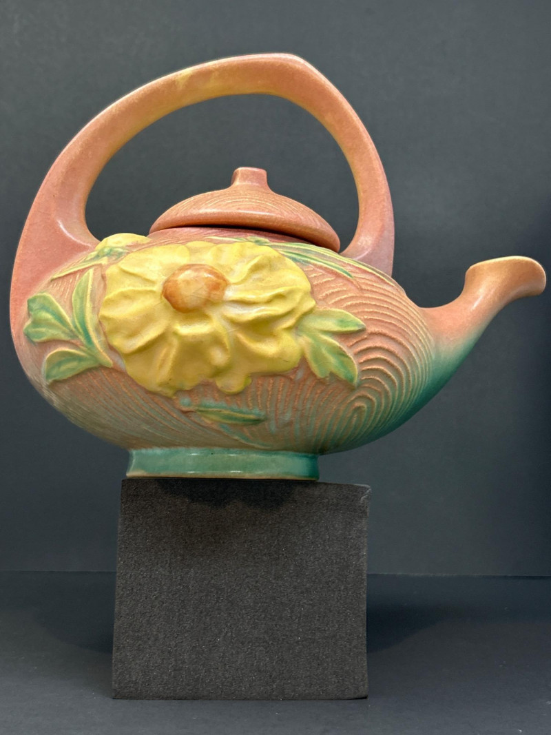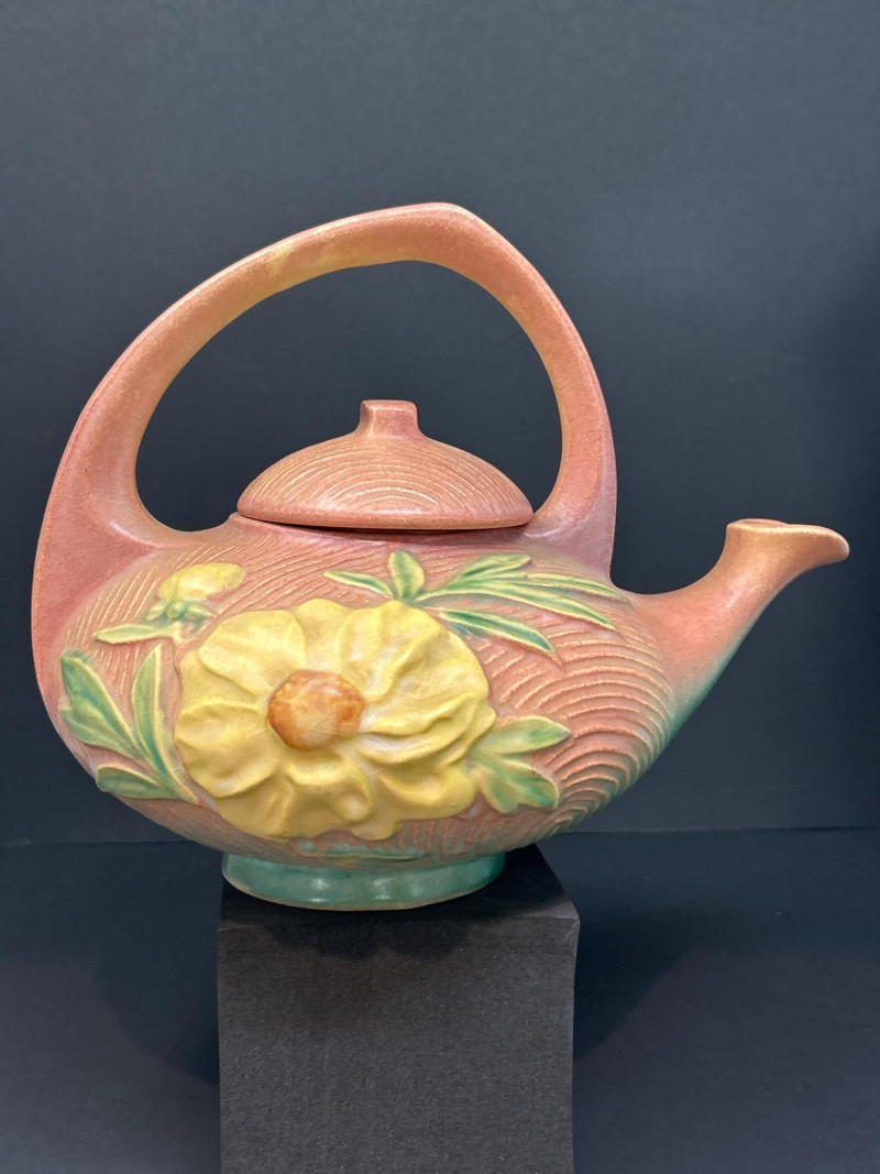 Lot # 17 - Roseville “Peony” Teapot, Abingdon Vase & 22K Gold Fan Vase