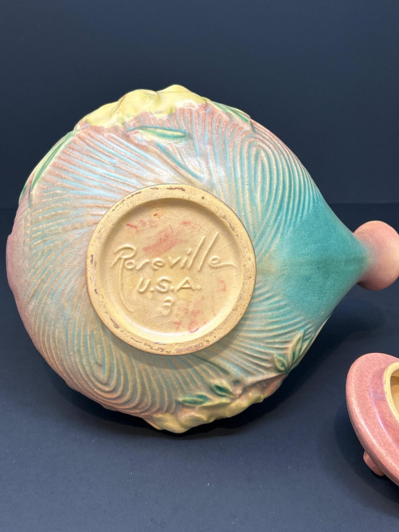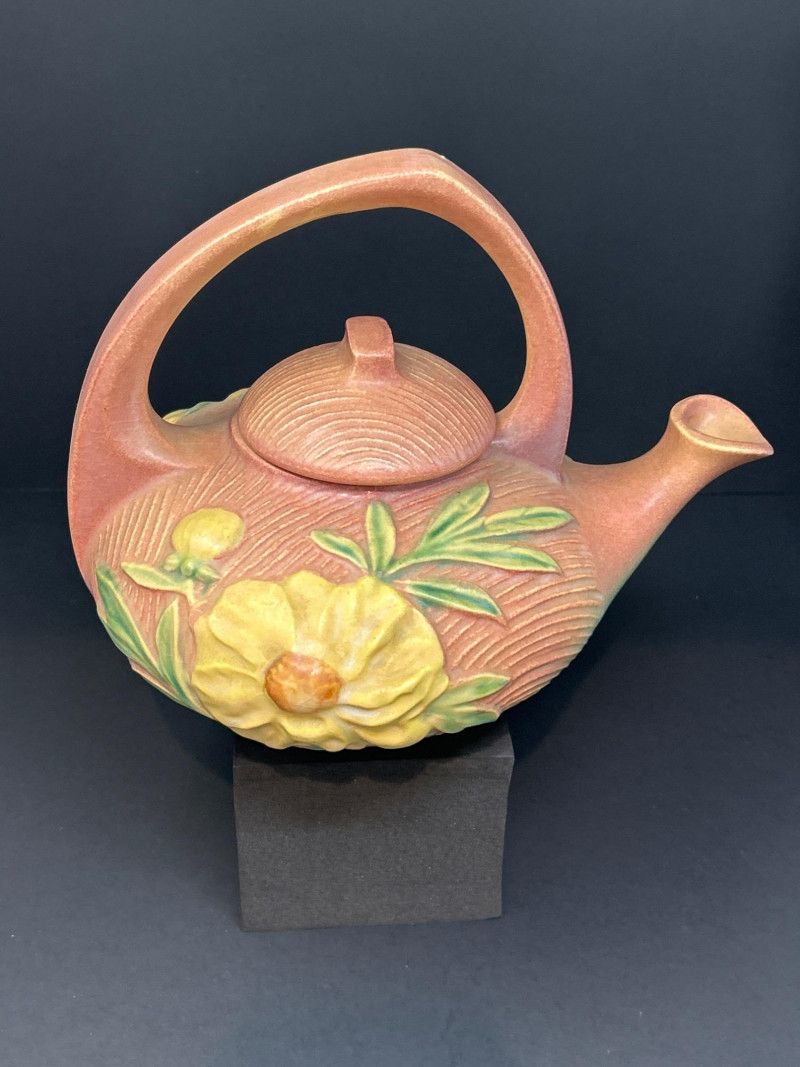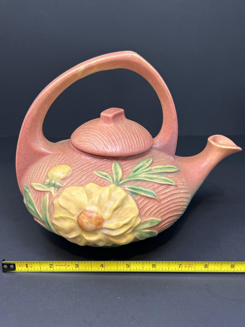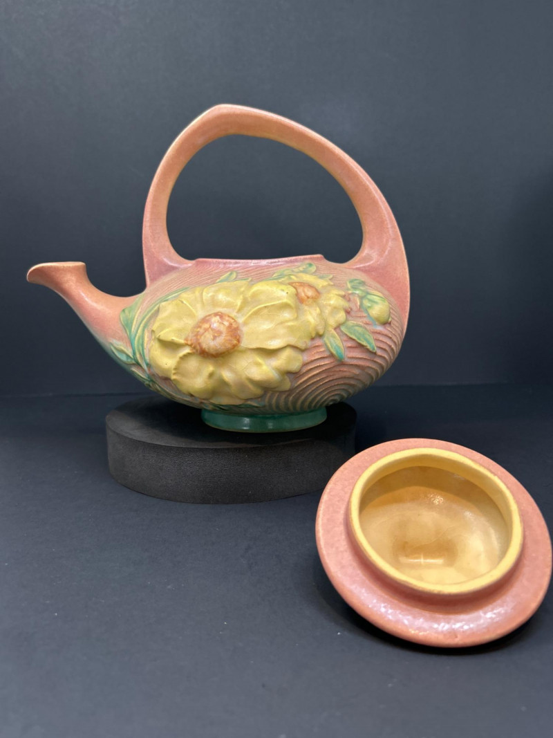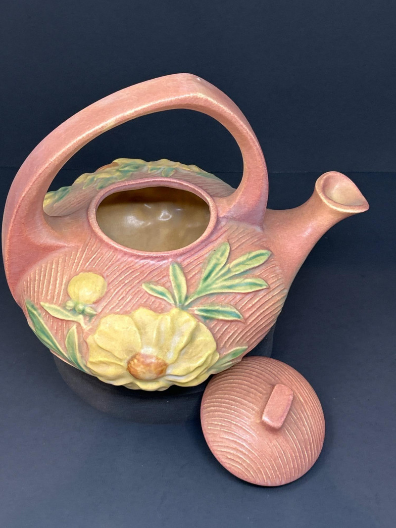 Lot # 17 - Roseville “Peony” Teapot, Abingdon Vase & 22K Gold Fan Vase