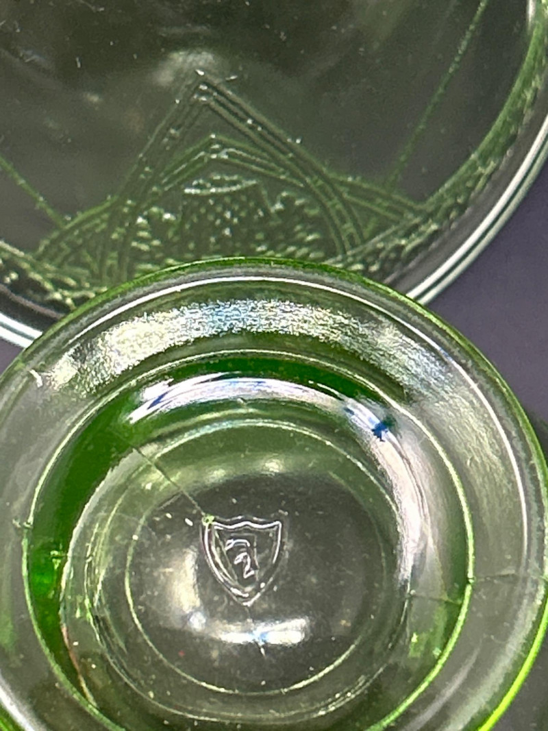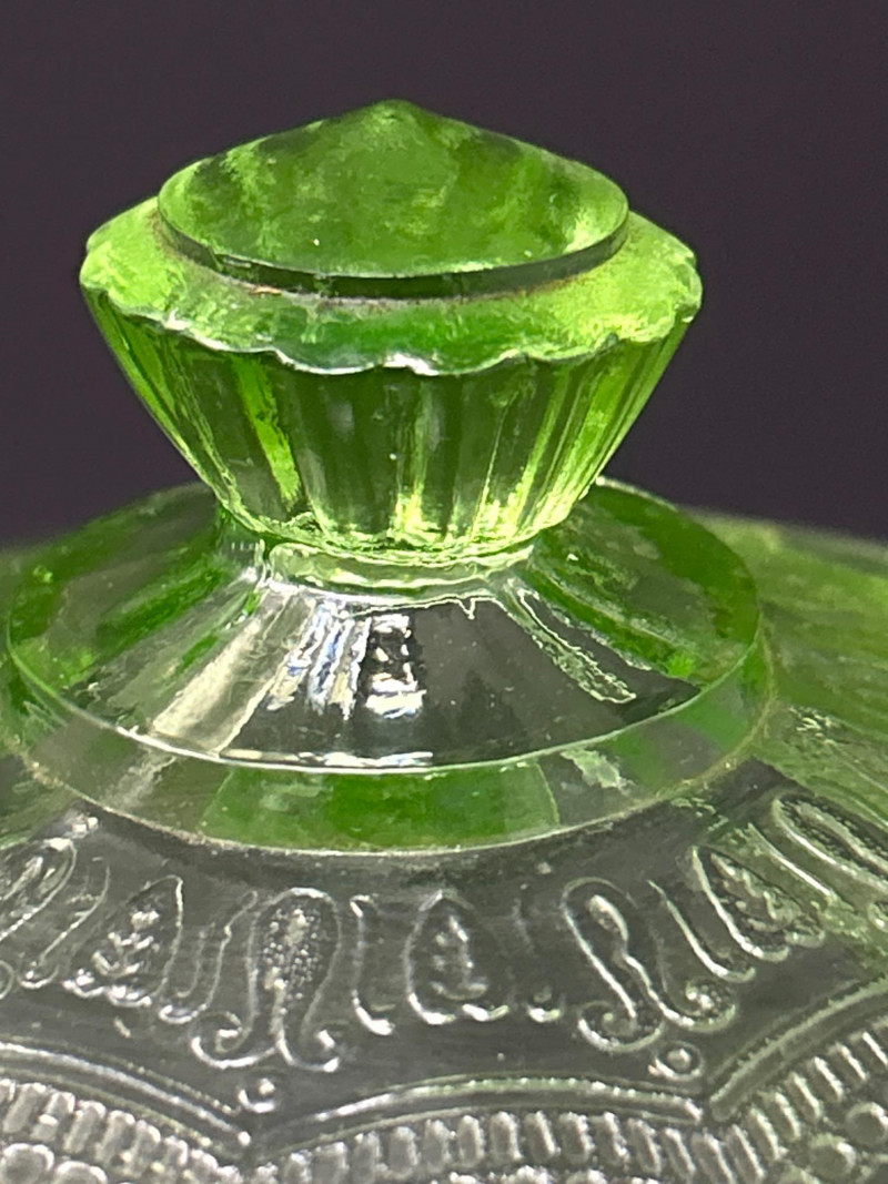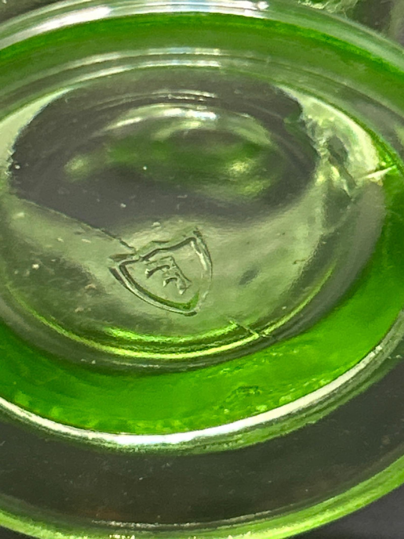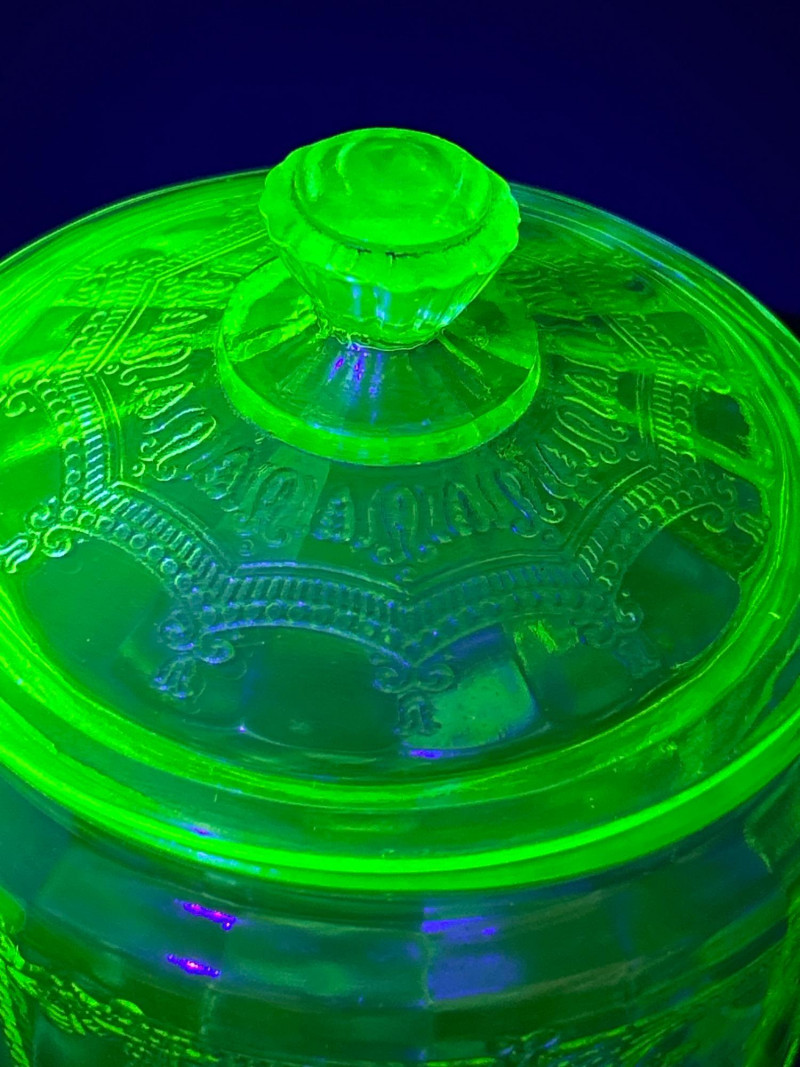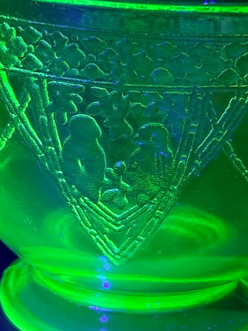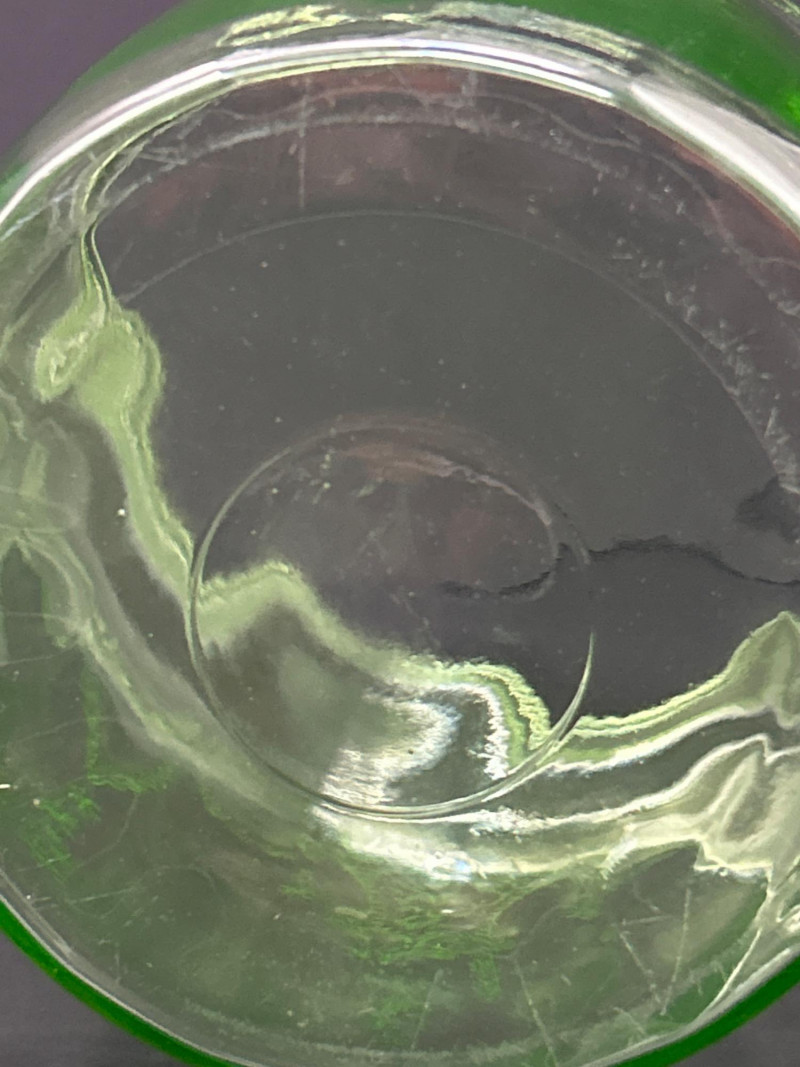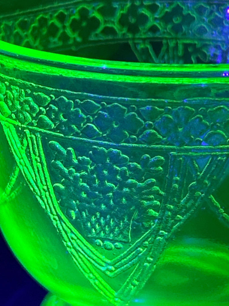 Color / Finish: Uranium green pressed glass – glows brilliantly under UV light