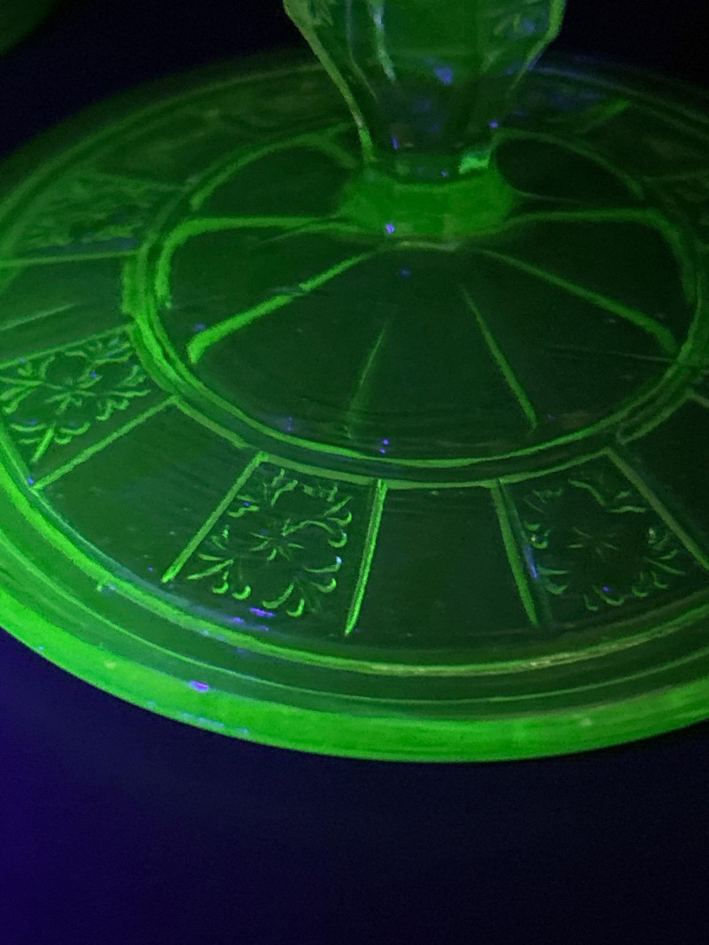 Color / Finish: Uranium green glass with strong fluorescence under UV light