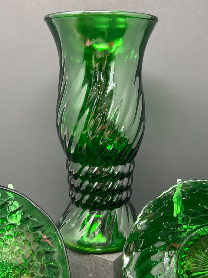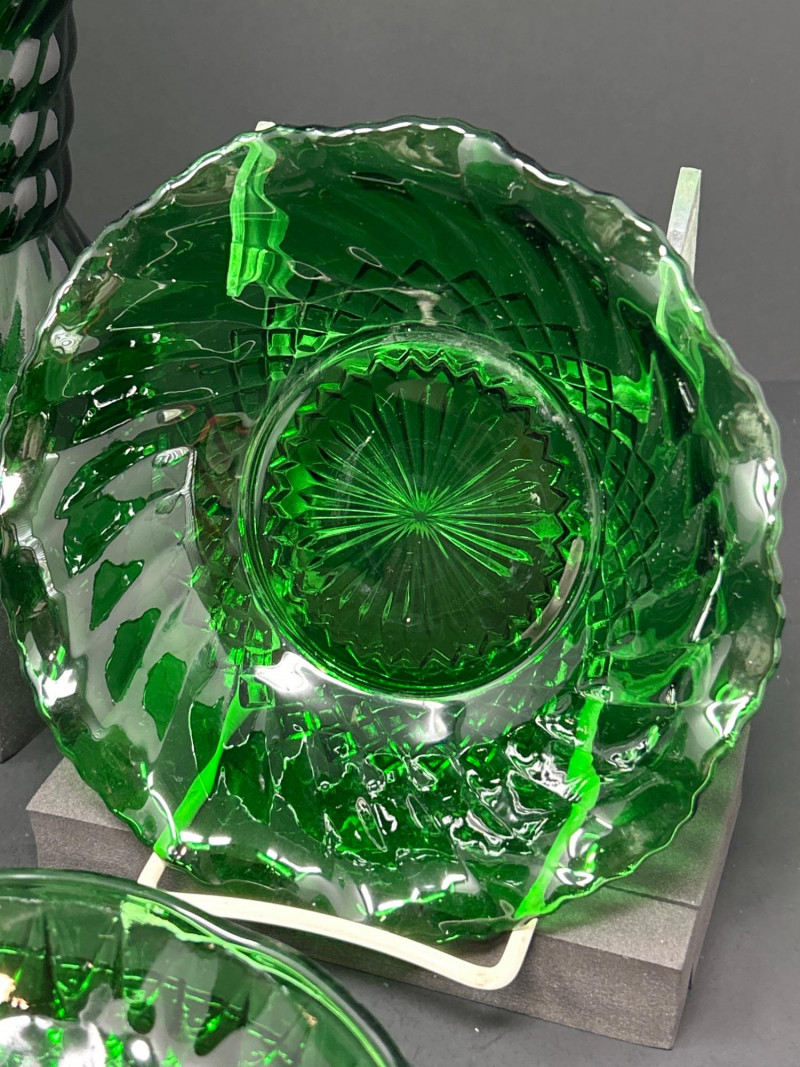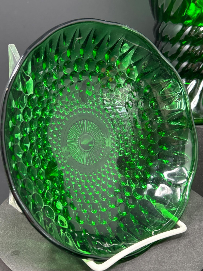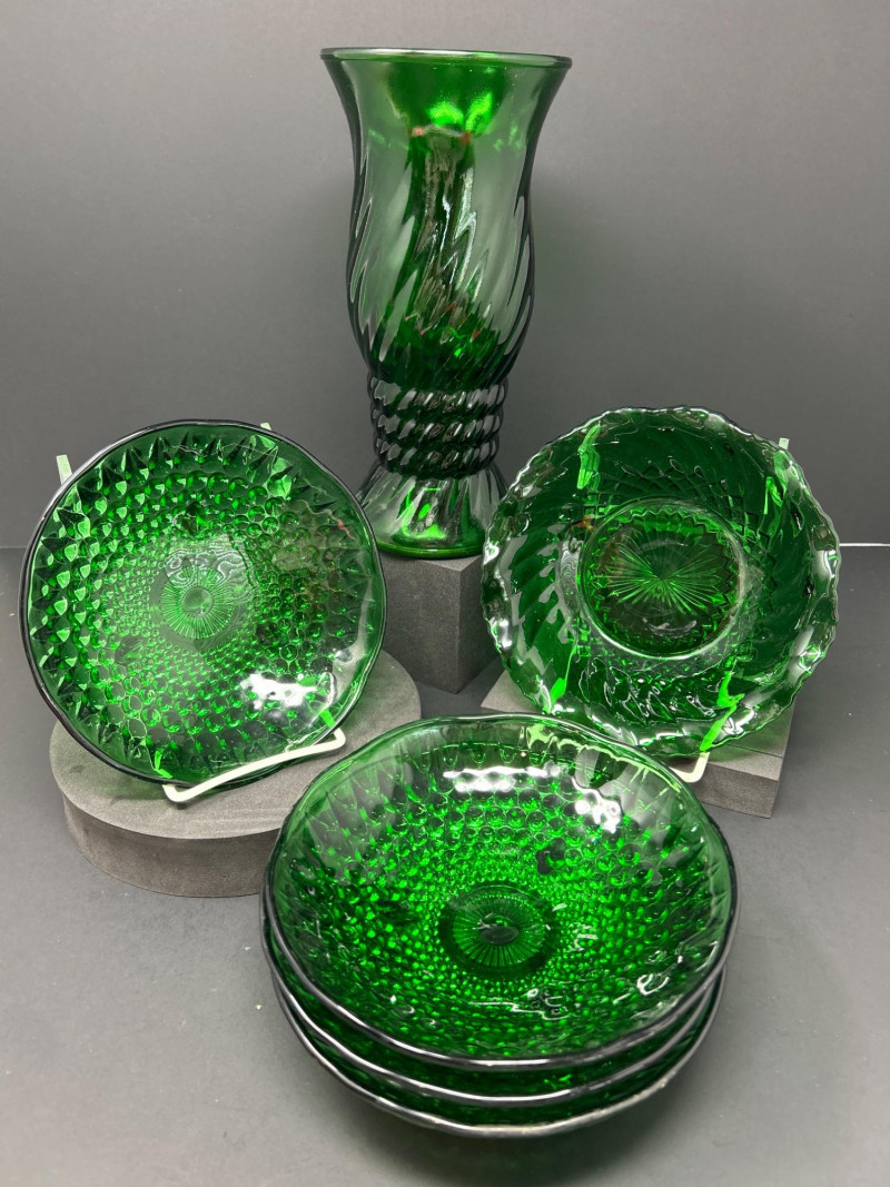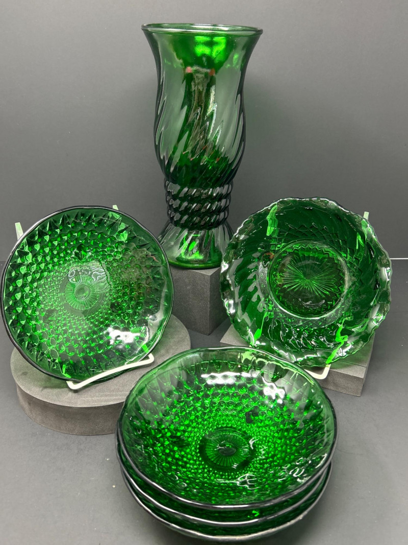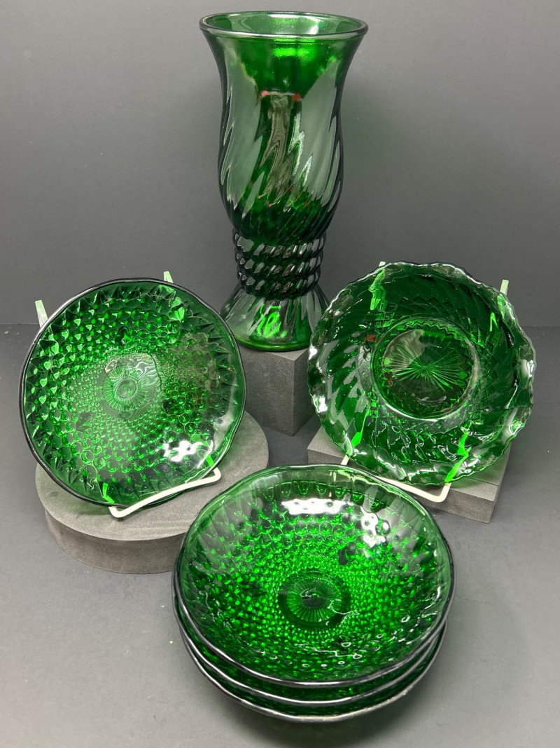 Lot # 45 - Forest Green Glass – Anchor Hocking Bowls & E.O. Brody Vase
