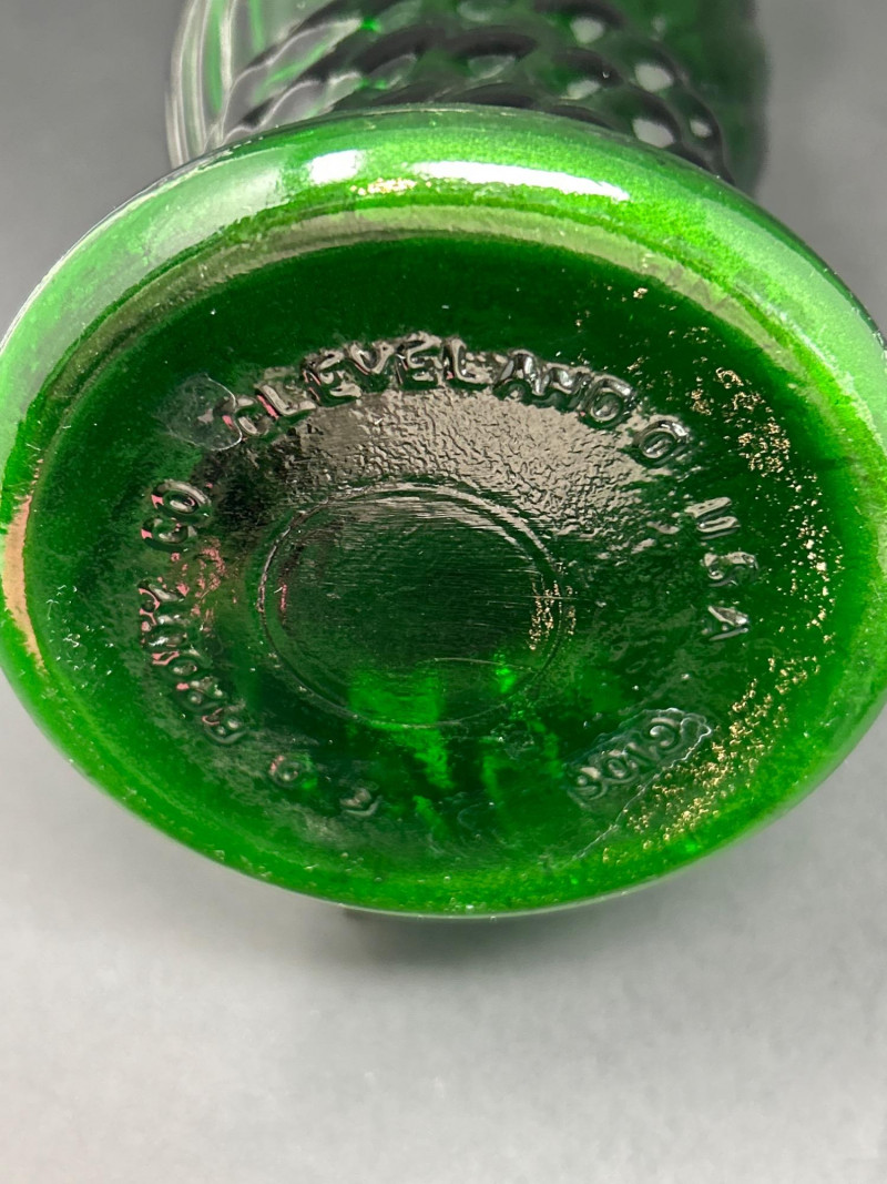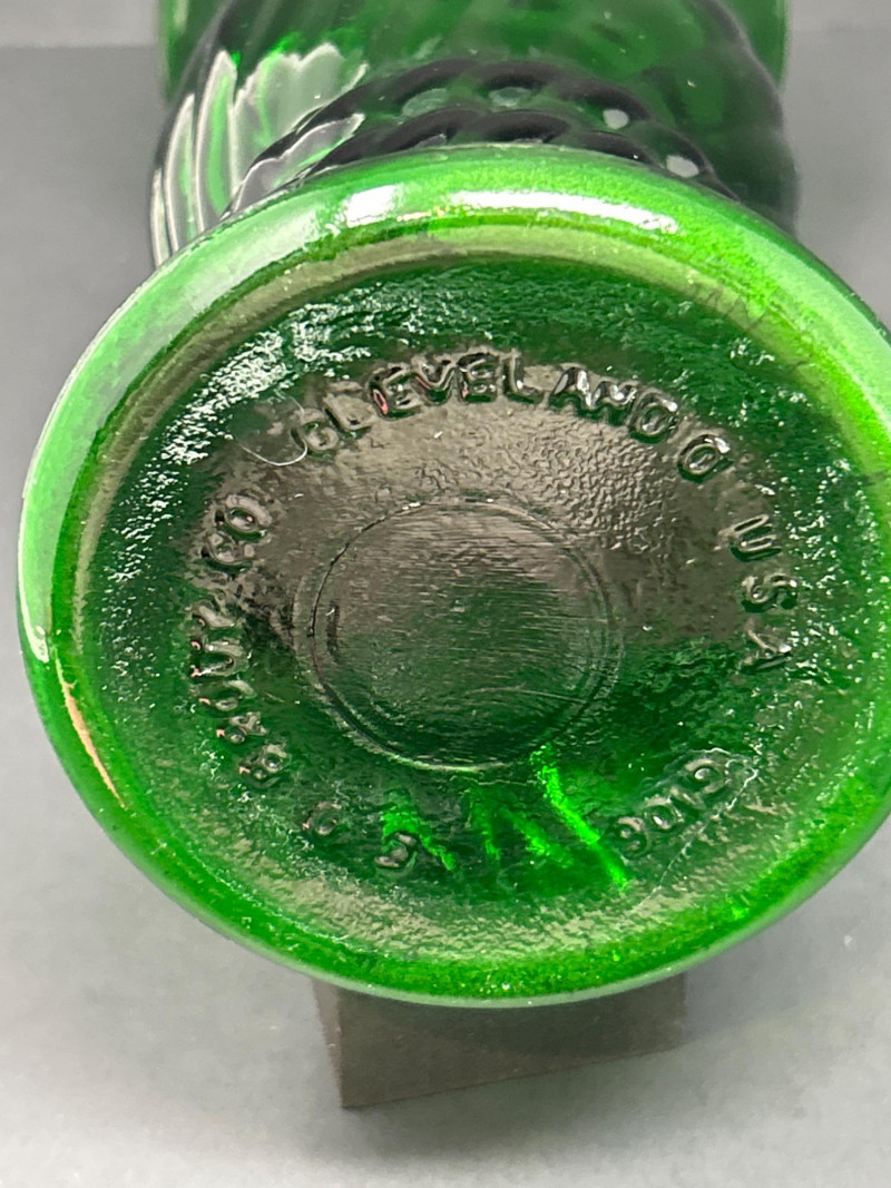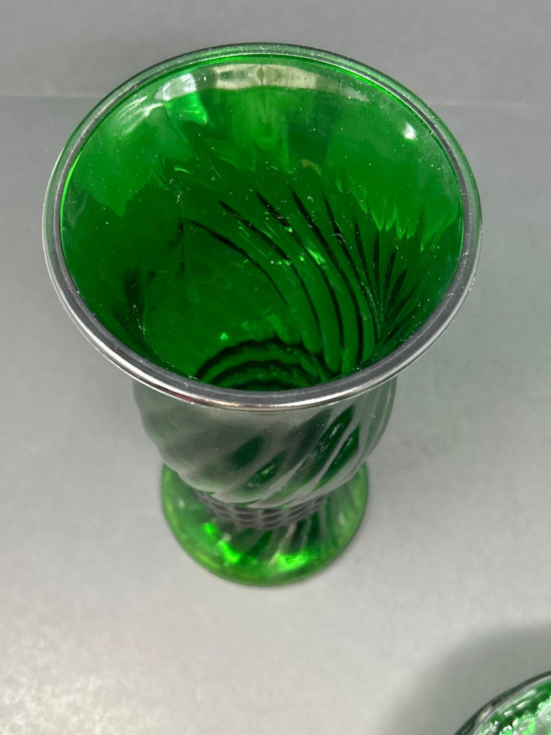 Color / Finish: Emerald green pressed glass with spiral ribbed design