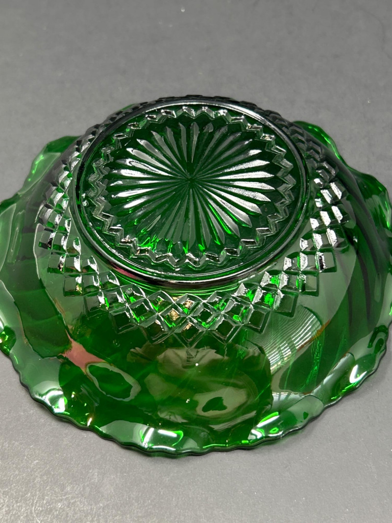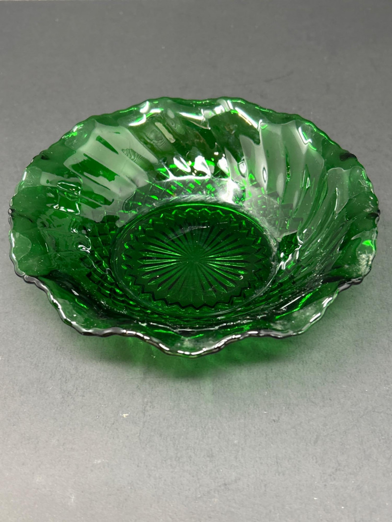 Color / Finish: Gloss emerald green with fluted edge and crisscross base design