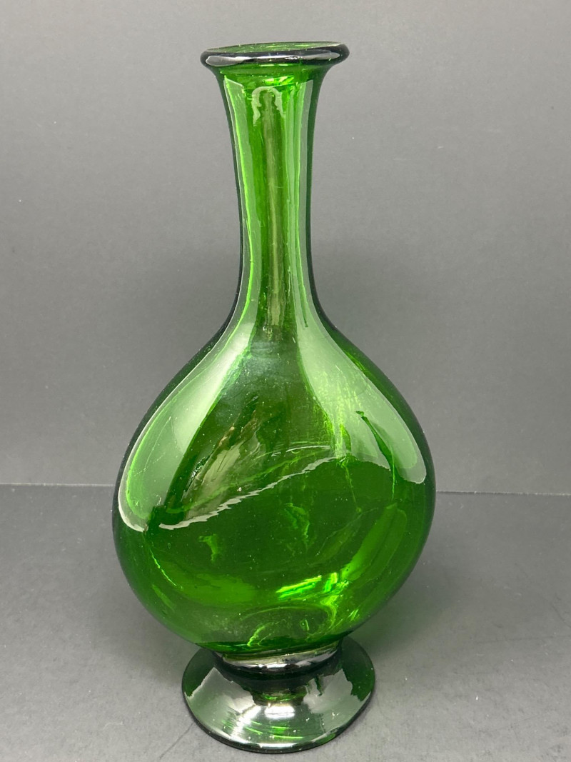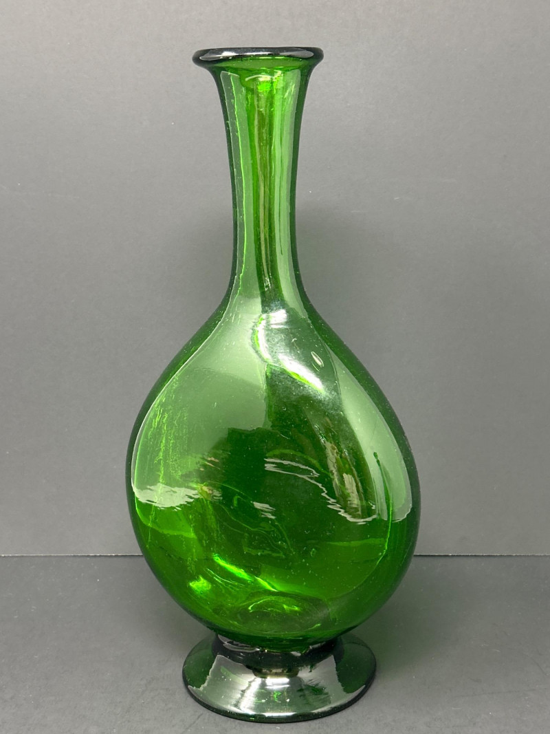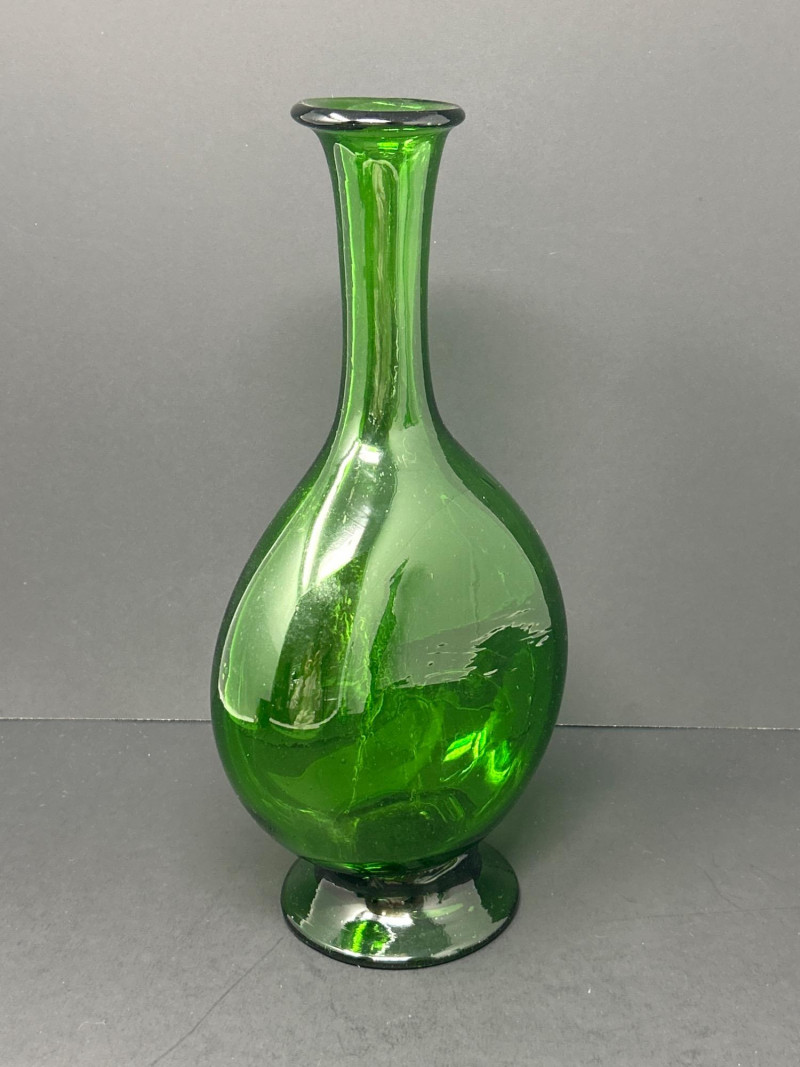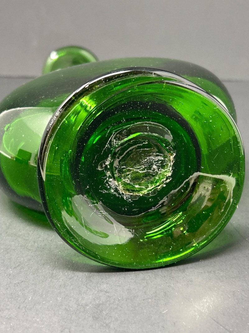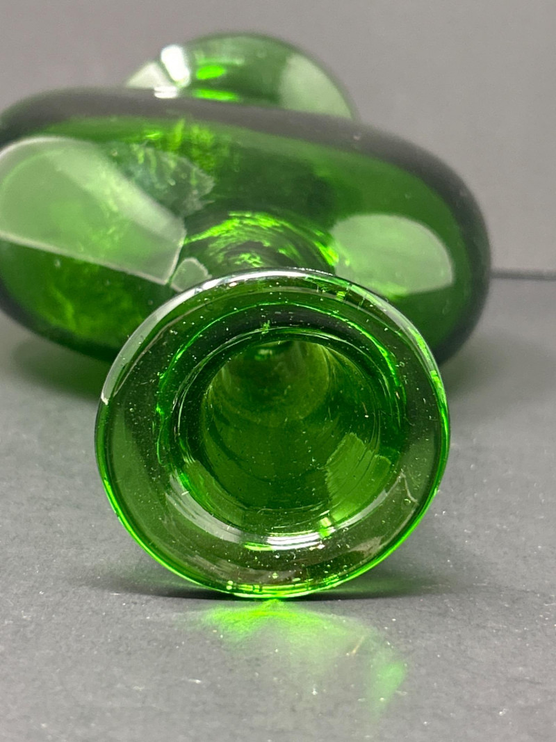 Together, these pieces reflect the evolution of 20th-century glass design — from streamlined MCM forms to Deco-inspired vanity glass — unified by deep emerald and light chartreuse tones.Item Details: