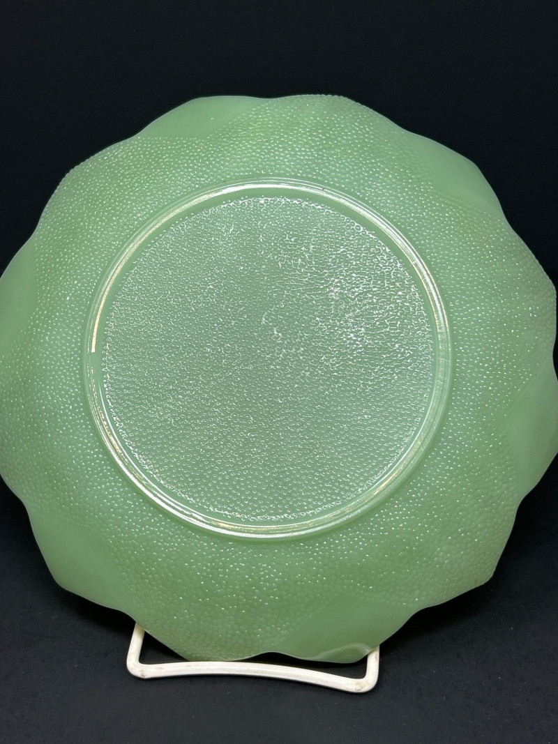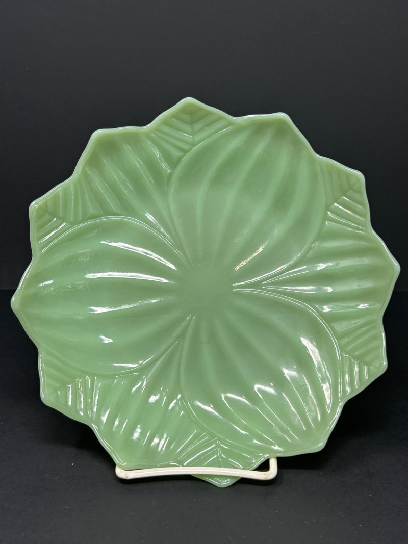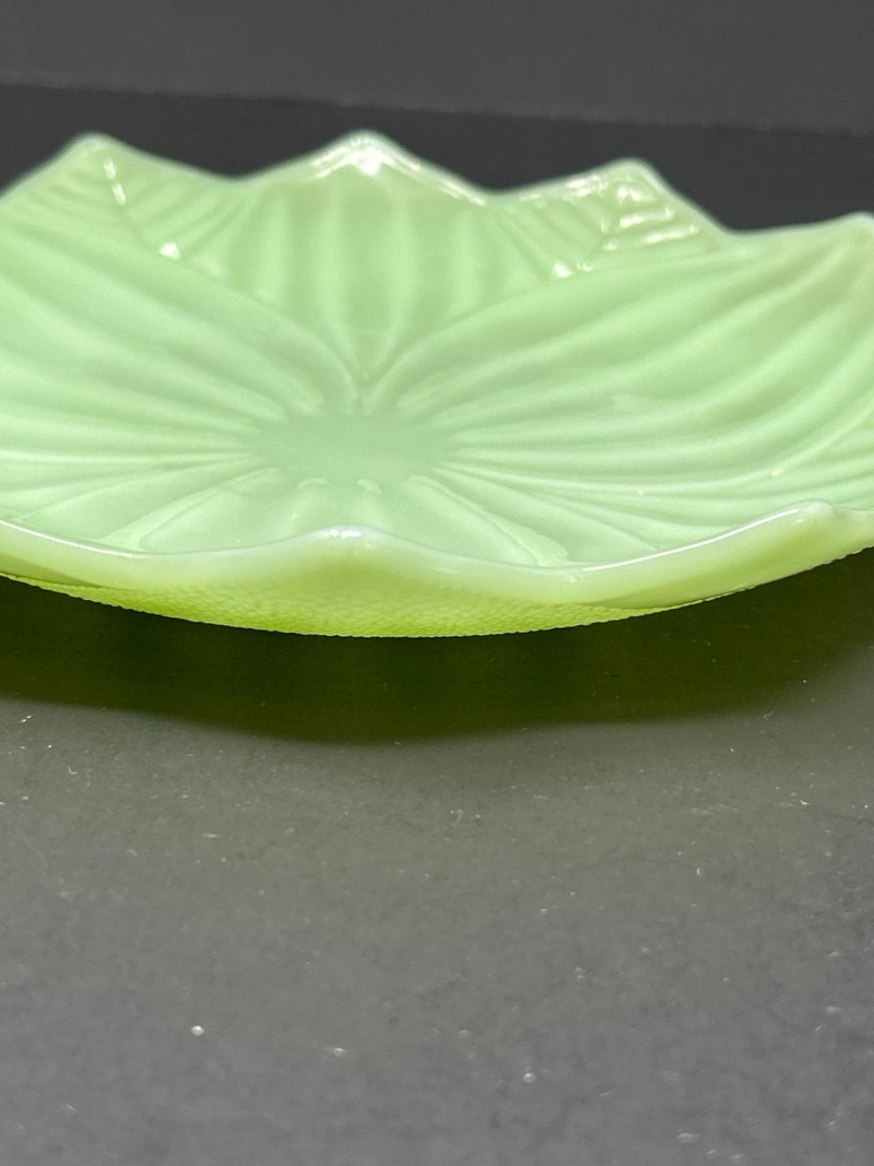 Color / Finish: Glossy jadeite green with molded leaf-vein design