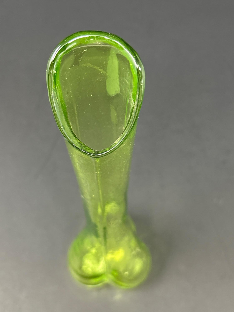 Color / Finish: Light lime-green transparent glass with tri-lobed base