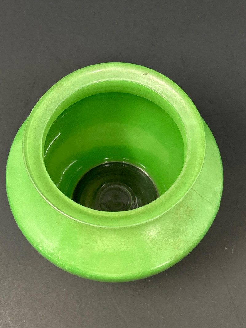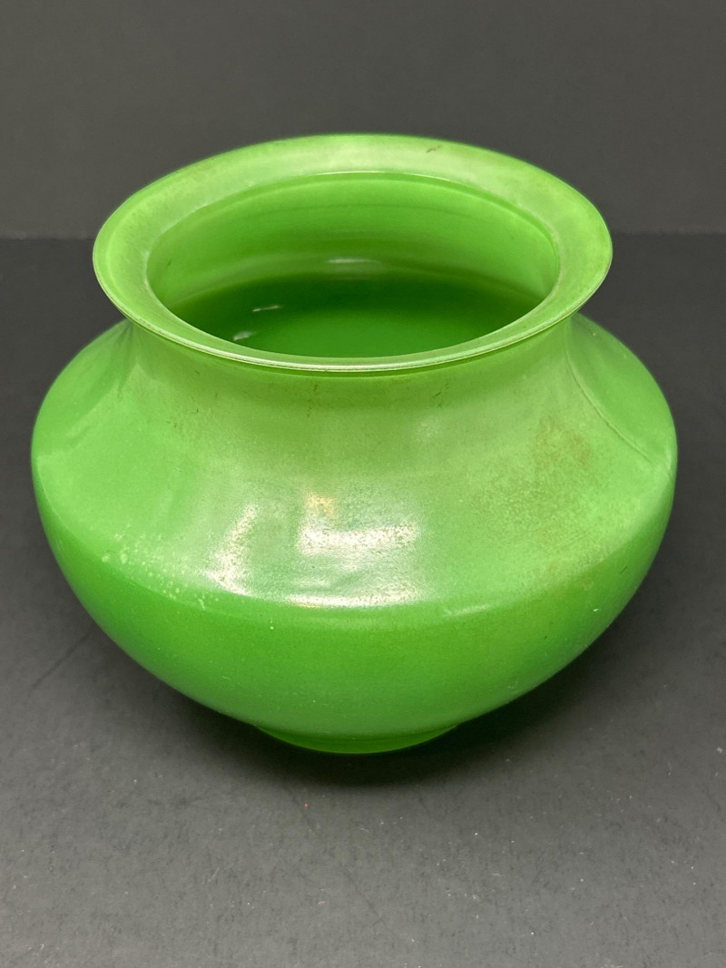Color / Finish: Soft jade-green satin glass with rounded lip