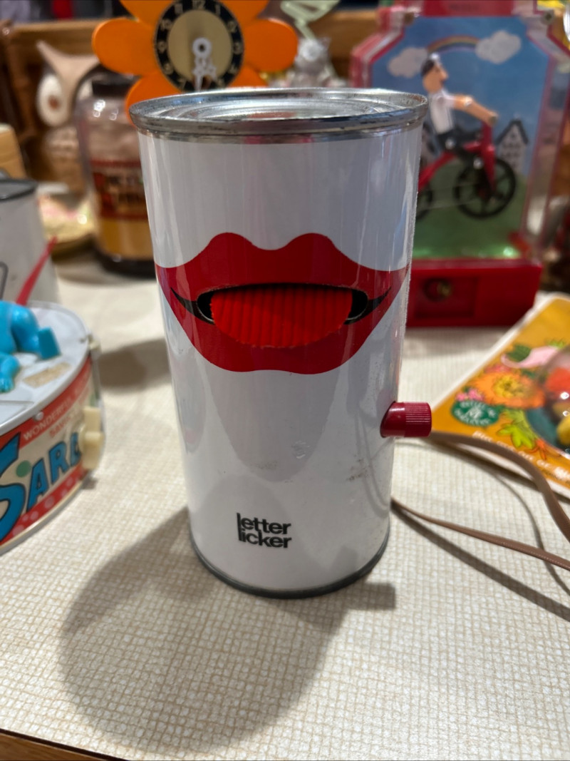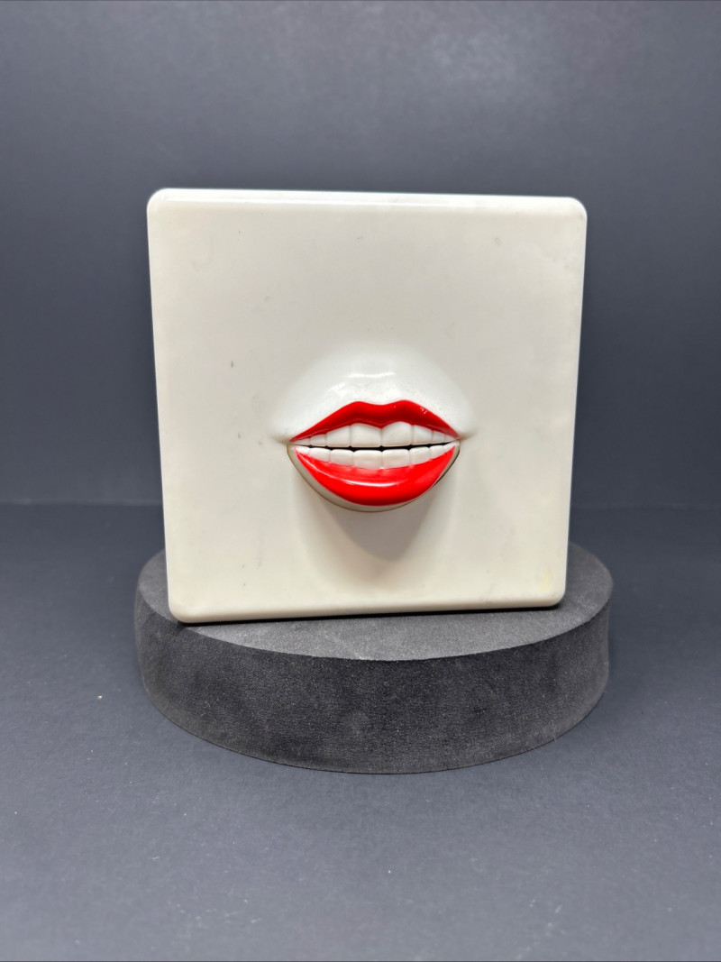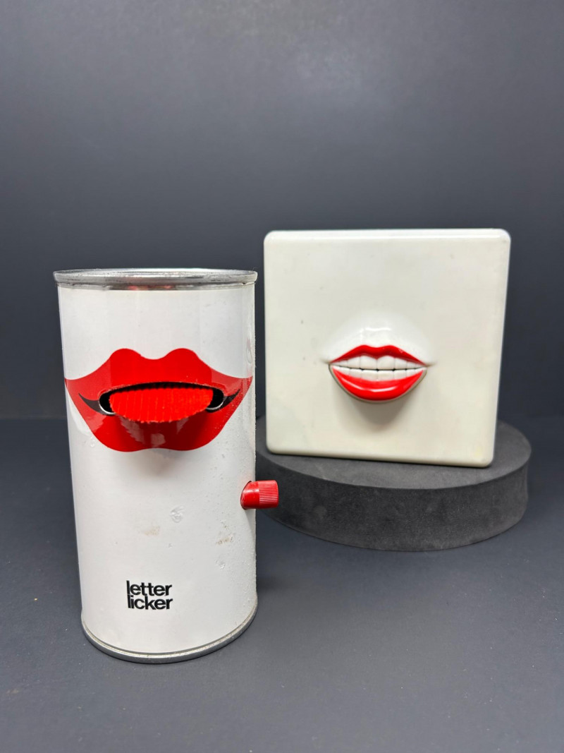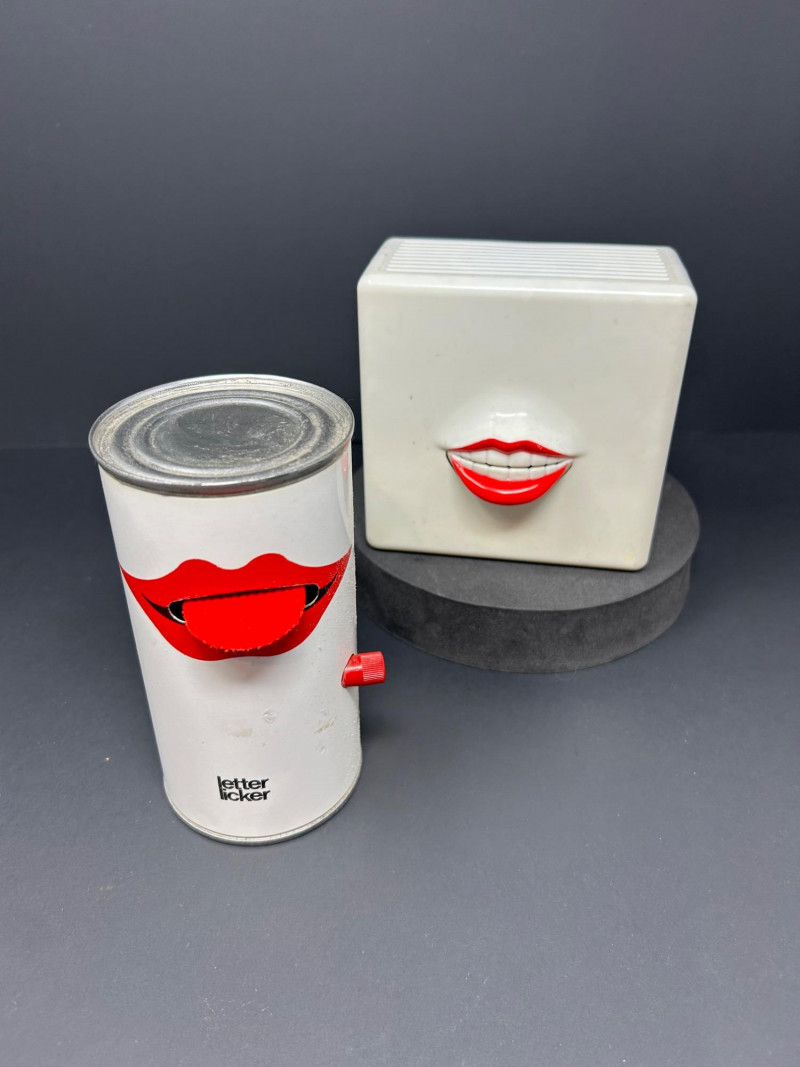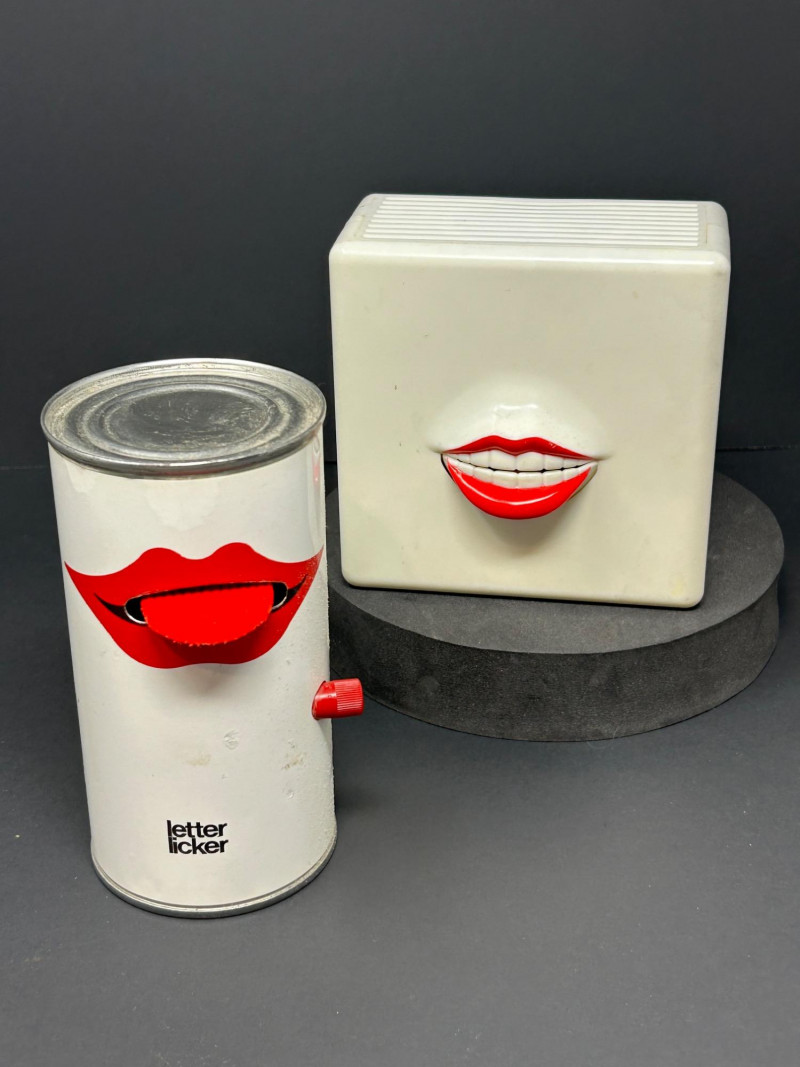 A playful and iconic pair of pop-art inspired novelties featuring a Nasta “Blabber-Mouth” AM/FM Talking Radioand a 1978 “Letter Licker” Stamp Can. Together, these red-lipped conversation pieces capture the bold humor and design aesthetic of 1970s–1980s pop culture—bridging gadgetry, advertising whimsy, and retro décor charm. Blabber-Mouth Talking Radio Letter Licker Stamp CanItem Details: