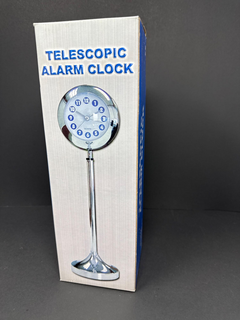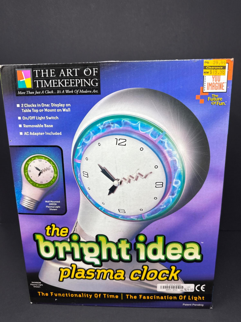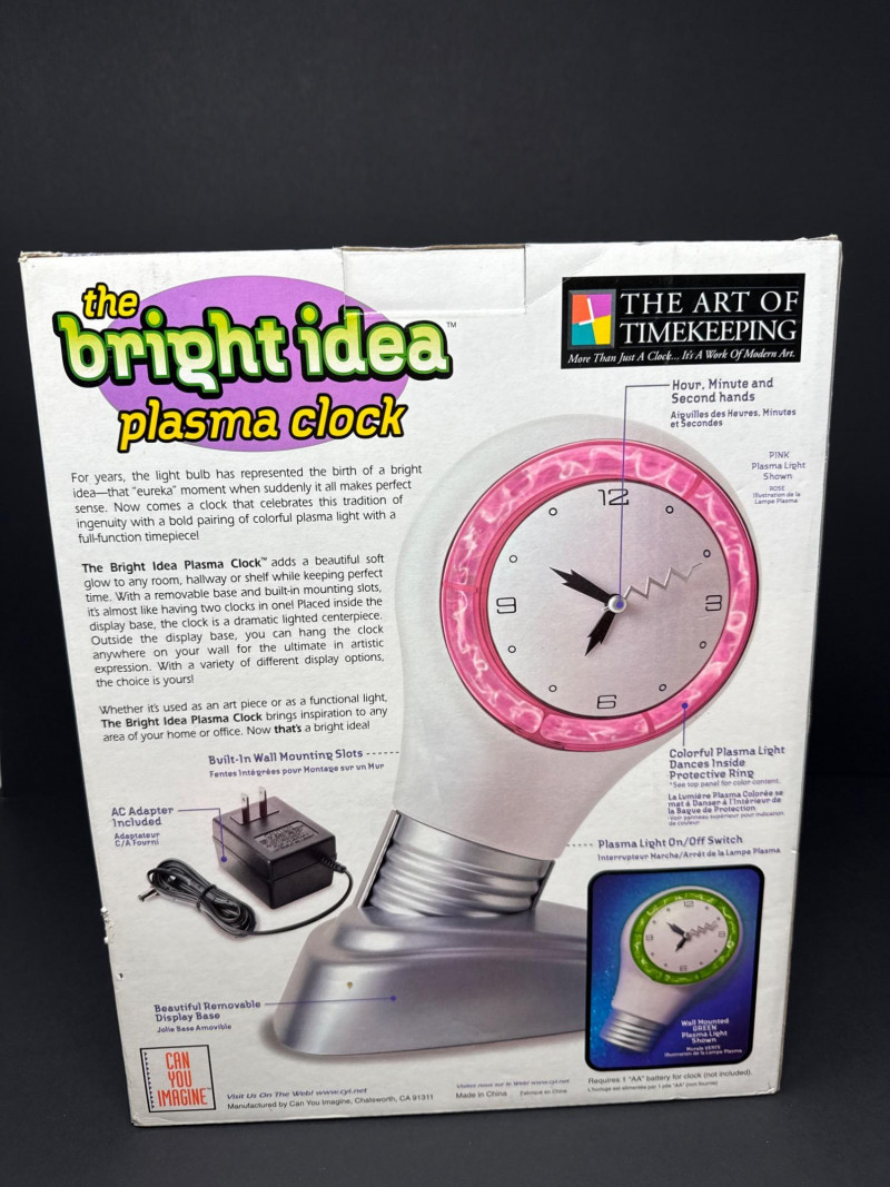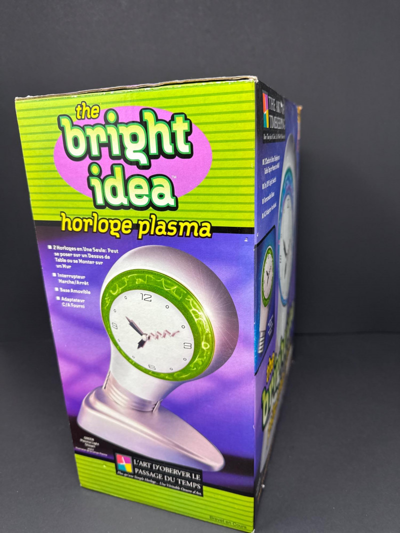 A contemporary duo of novelty clocks featuring The Art of Timekeeping “Bright Idea” Plasma Clock and a Telescopic Alarm Clock in polished chrome. The Bright Idea Plasma Clock Dual display: tabletop or wall-mounted Removable base with built-in mounting slots On/Off plasma light switch Telescopic Alarm Clock Telescoping stand Analog face with alarm switch Please note – these items have not been tested, therefore we do not know the working condition. Most of the items have never been out of the box and most packaging is intact. We do NOT guarantee these items nor will we give refunds.